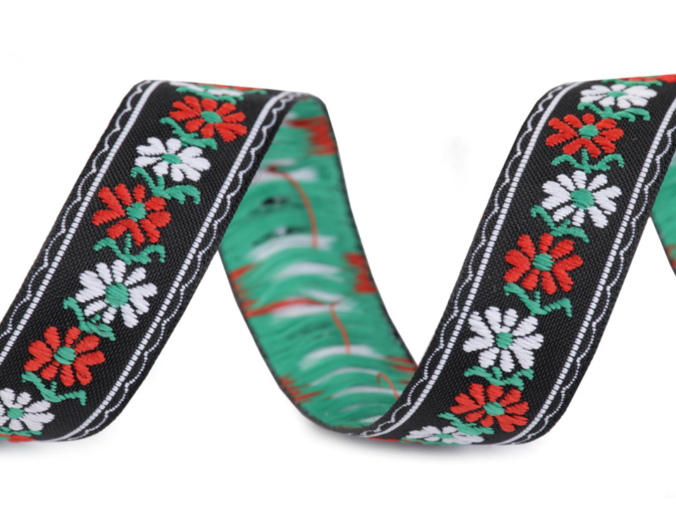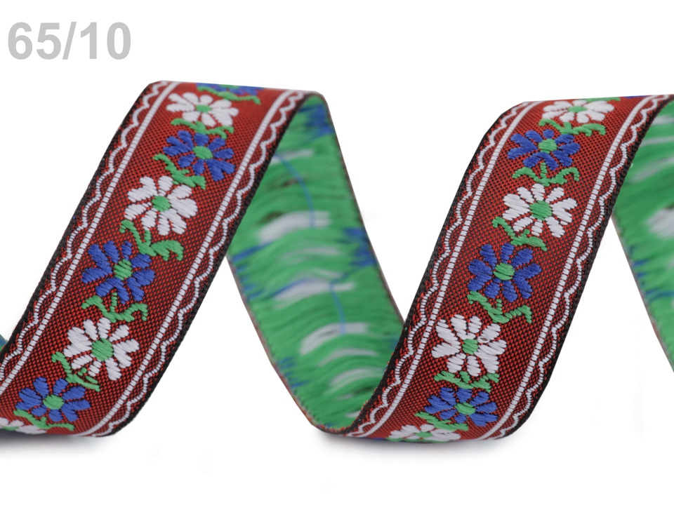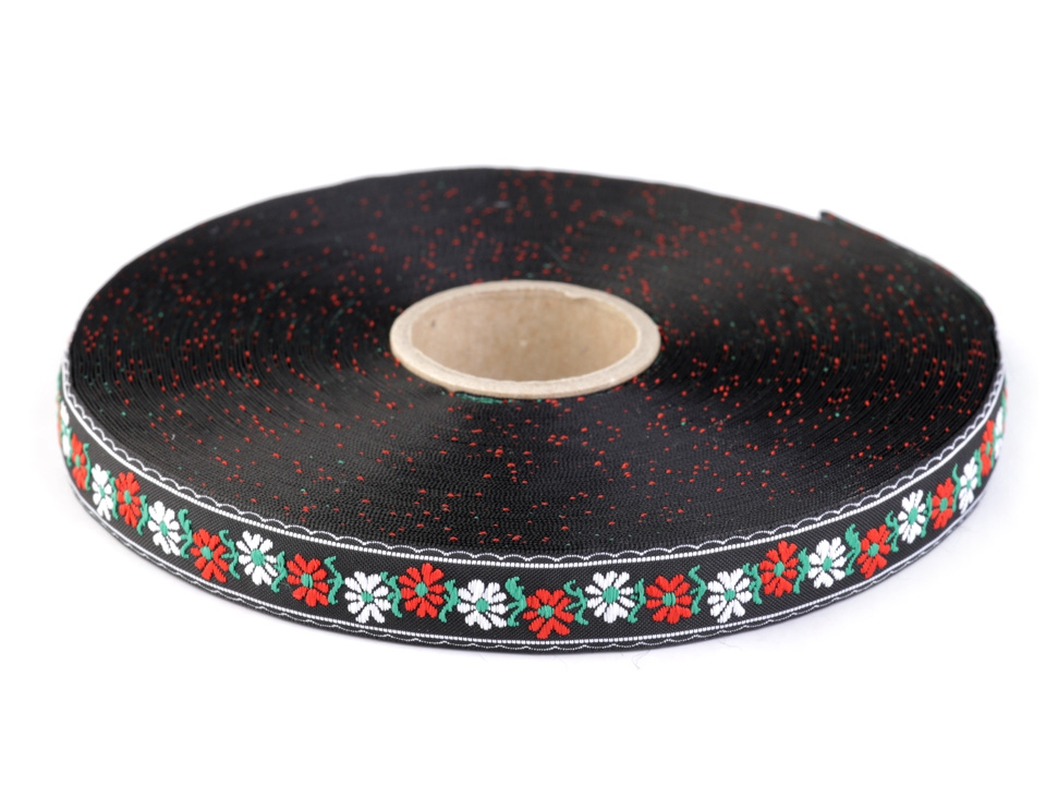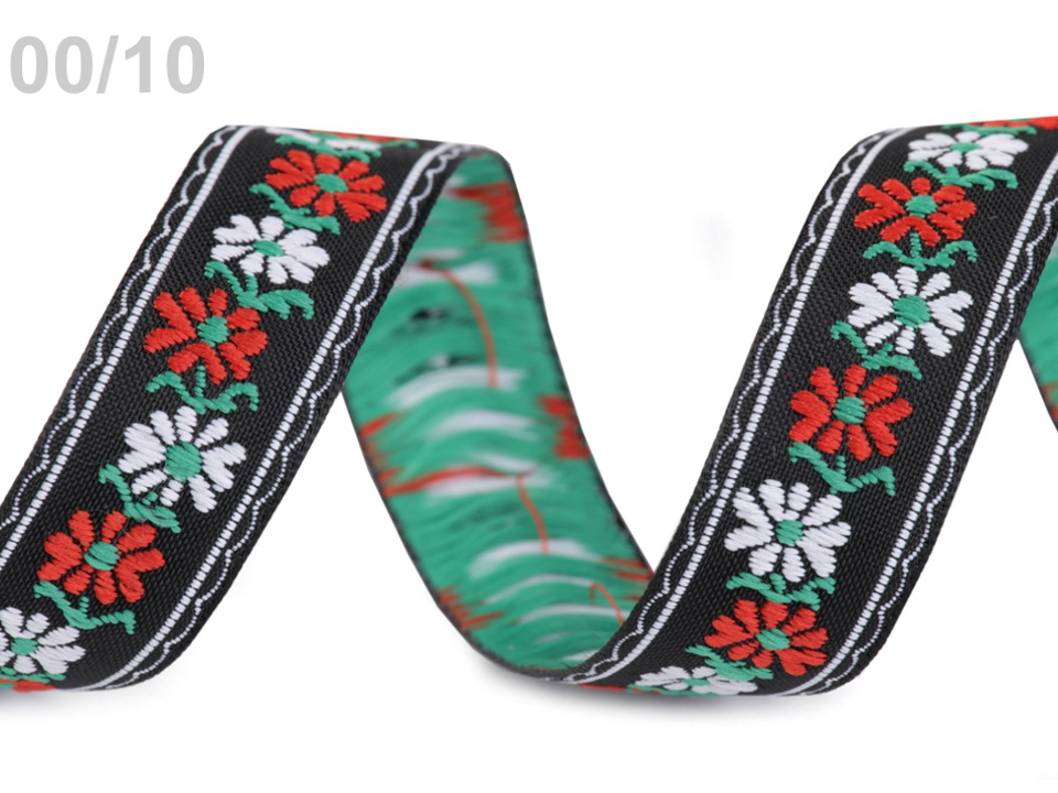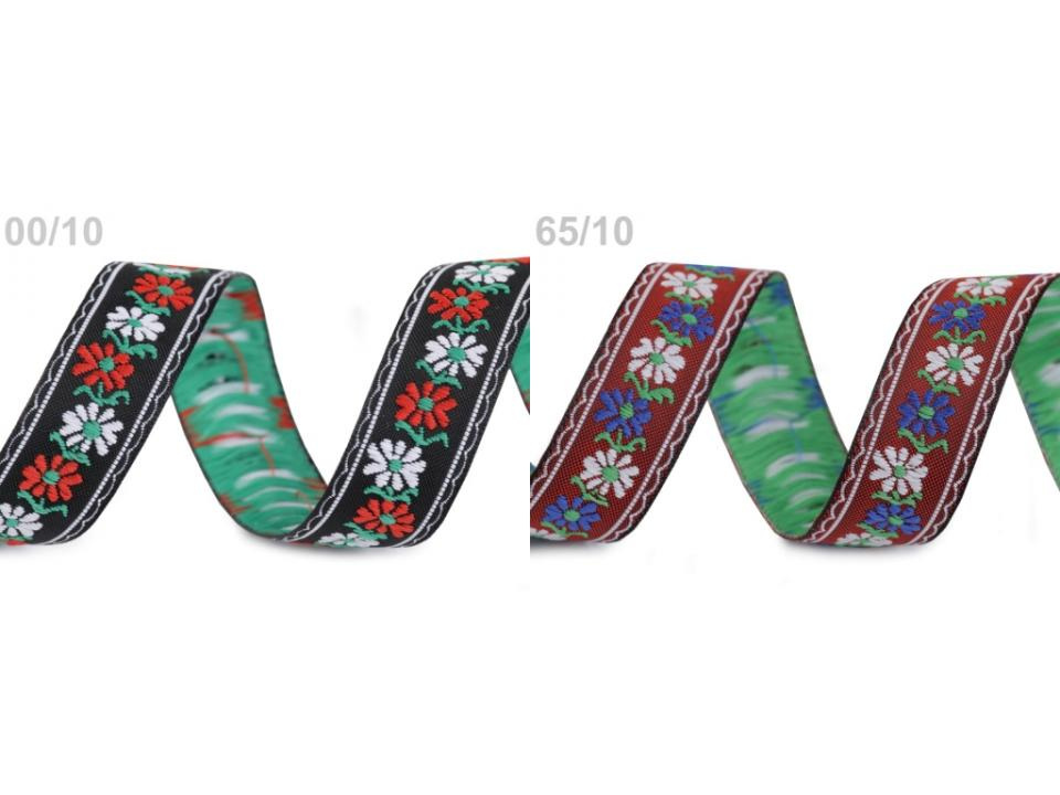 Krojová vzorovka s typickým květovaným vzorem je tkaná na jehlových stavech.