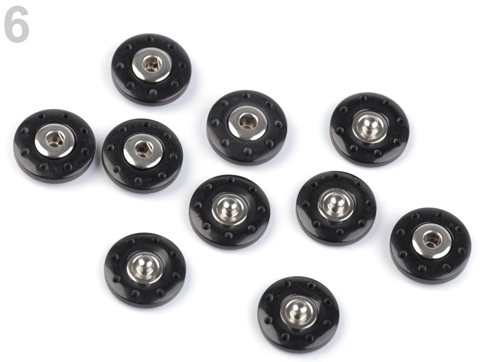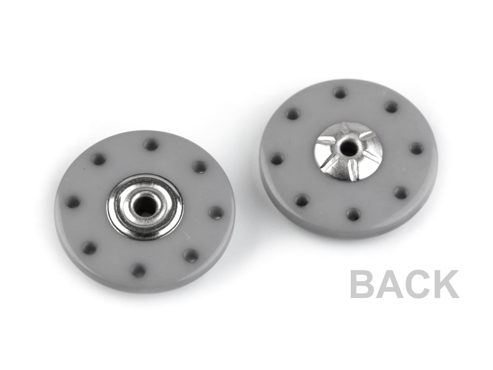 Designové plastové patentky využijete jako zapínání na tašky, kabáty, bundy nebo mikiny. Jejich okraje lemují dírky, za které je pohodlně našijete na látku.