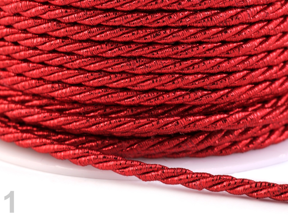 Kroucená šňůra s lurexem se efektně třpytí. Je složená ze tří tenčích provázků.