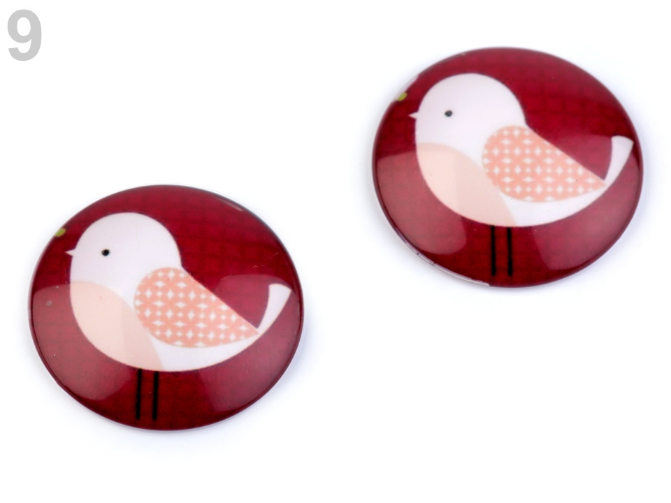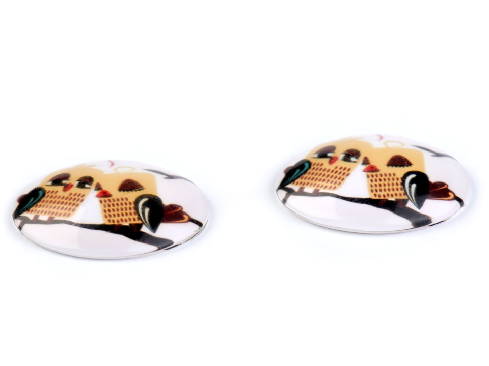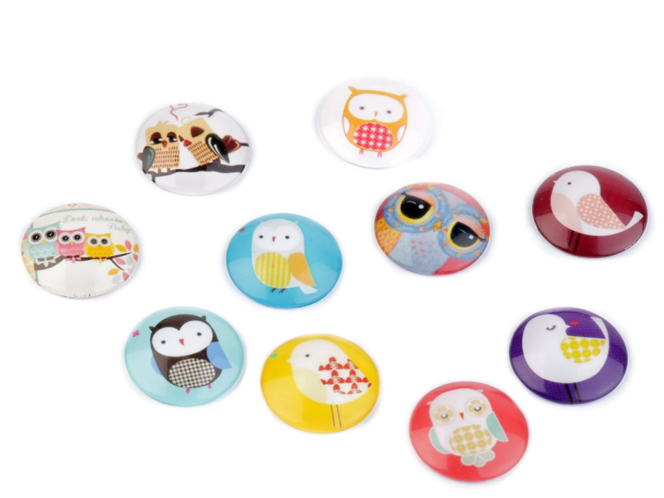 Jsou perfektně propracované, díky tvaru vypouklé čočky obrázky krásně vyniknou. Kabošony jsou vhodné k nalepení do kovového lůžka nebo k obšití korálky a rokajlem. Pro přilepení kabošonů je vhodné použít lepidlo na lepení kamínků.