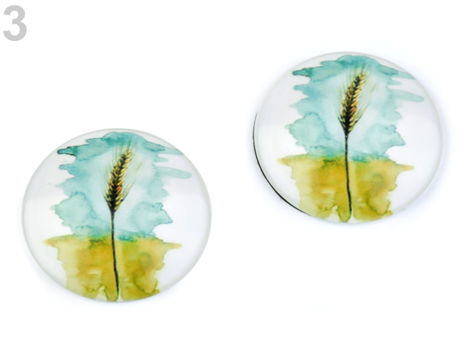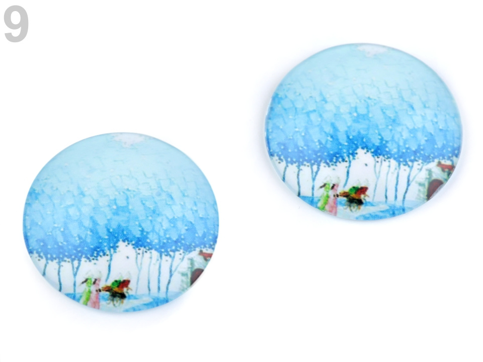 Je precizně propracovaný, díky tvaru vypouklé čočky obrázek krásně vynikne. Kabošony jsou vhodné k nalepení do kovového lůžka nebo k obšití korálky a rokajlem. Pro přilepení kabošonu je vhodné použít lepidlo na lepení kamínků.