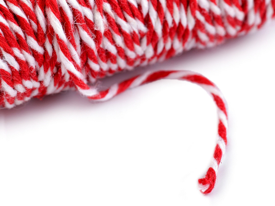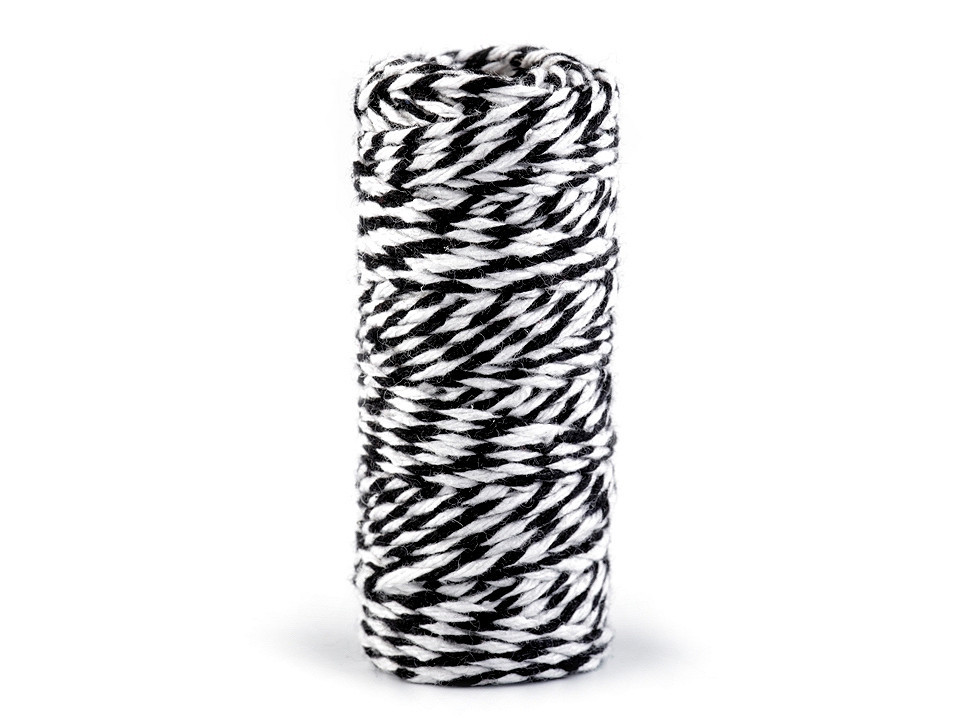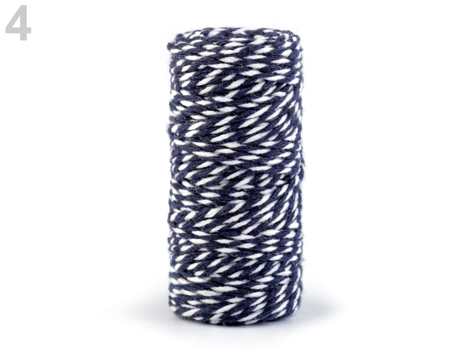 Bavlněná dvoubarevná šňůra je velice pevná. Je spletená z osmi tenkých nití.
