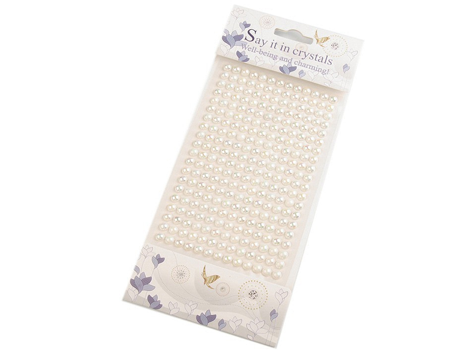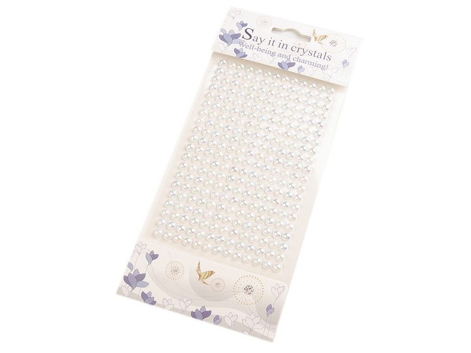 Půlkulaté samolepící perly s jedinečným perleťovým leskem s povrchovou AB úpravou. Využijete je k dekorování při technice scrapbooking.