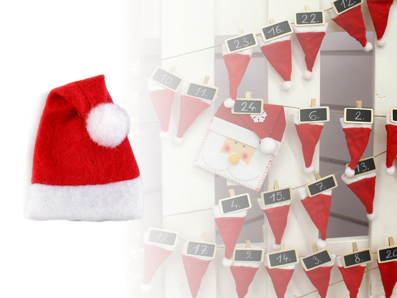 Malá vánoční čepice si vás získá svou roztomilostí. Využijete ji hlavně na vánoční dekorace. Krásně ozdobí například láhve piva či vína, kaktus nebo s ní můžete dotvořit postavičky. Je sice malá, ale šikovně využitelná.