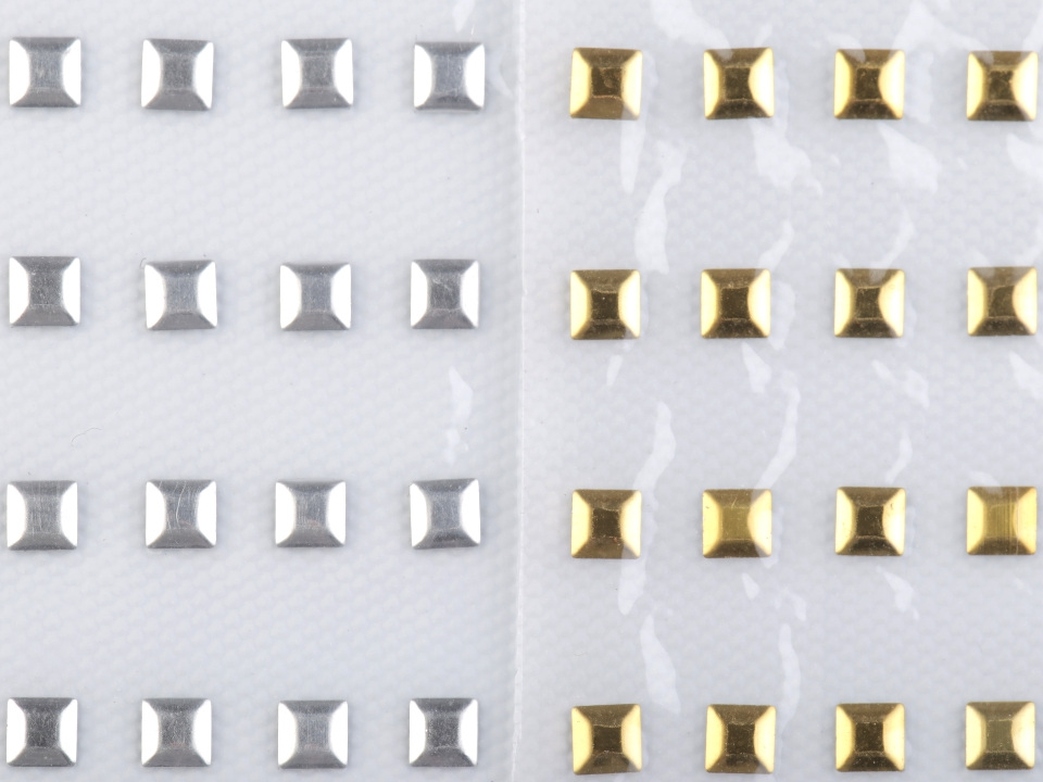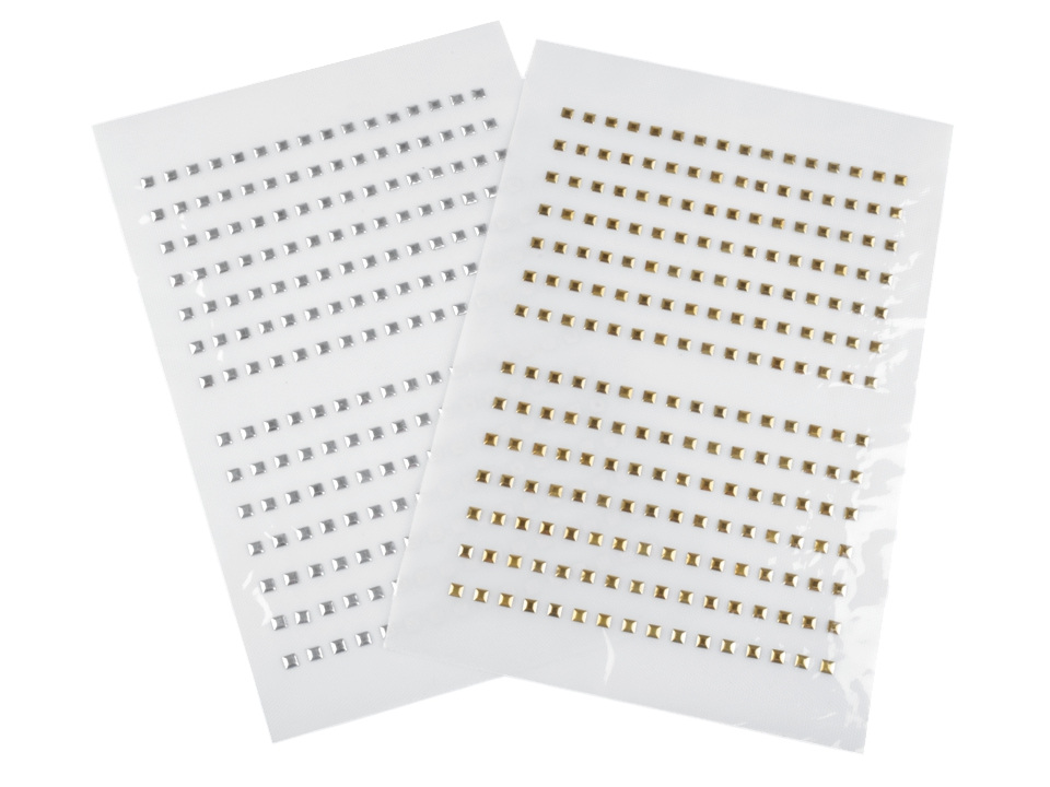 Kovové nažehlovací hot-fixy ve tvaru čtverečků na přenášecí fólii. Zkrášlí nejen oblečení, ale také tašky, batohy, textilní pouzdra, čepice apod. Jsou vhodné i na sportovní dresy.