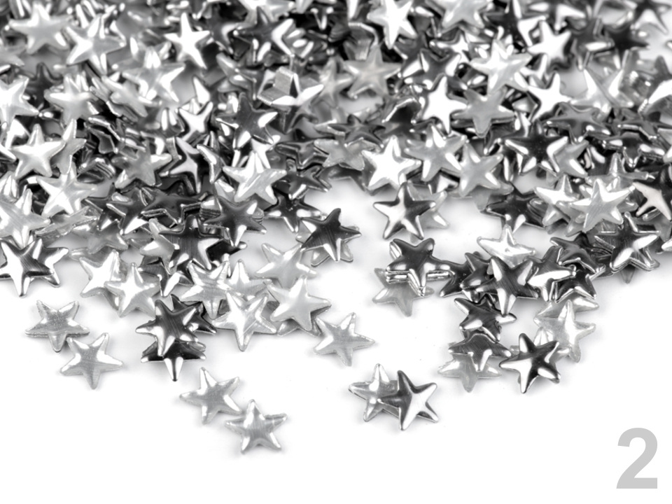 Kovové nažehlovací hot-fixy ve tvaru hvězdiček využijete na ozdobení oděvů i doplňků, jako jsou tašky, batohy, čepice apod. Jsou vhodné také na vánoční dekorace - pytlíky, prostírání atd.