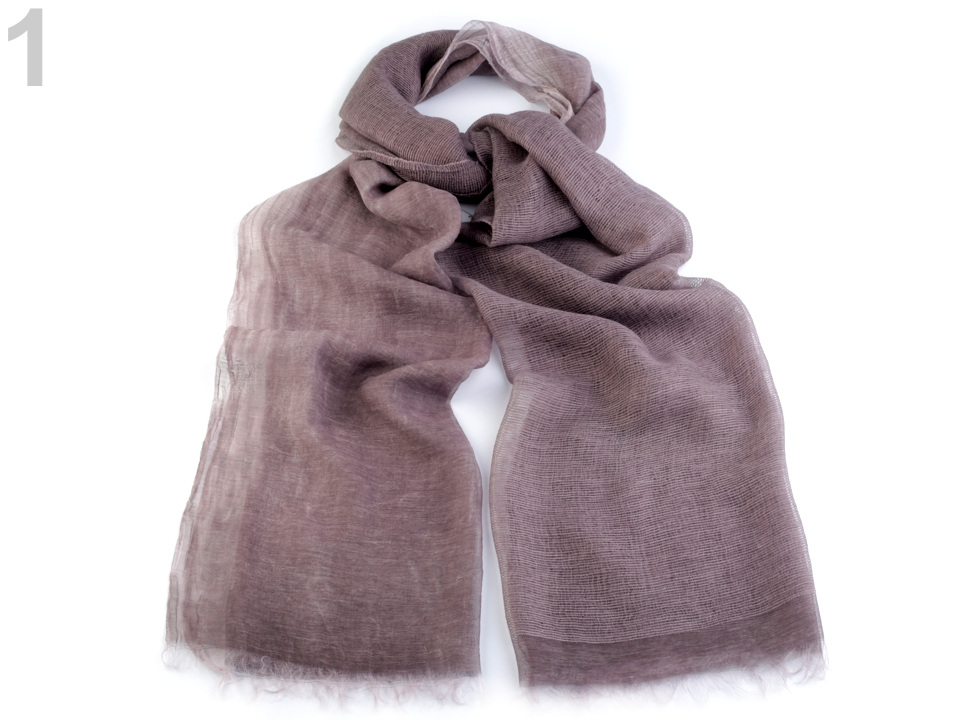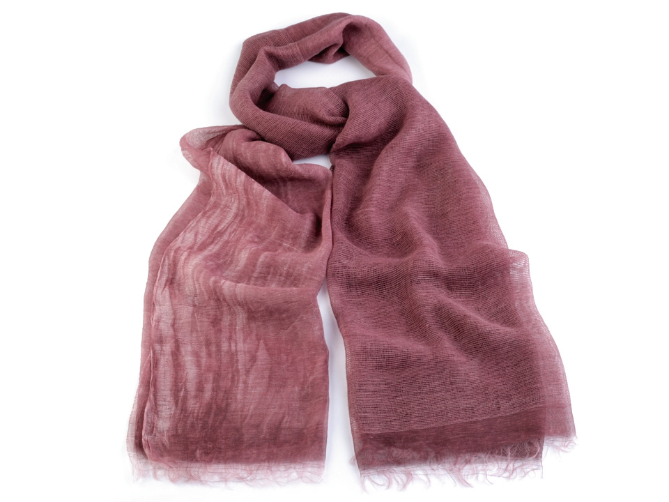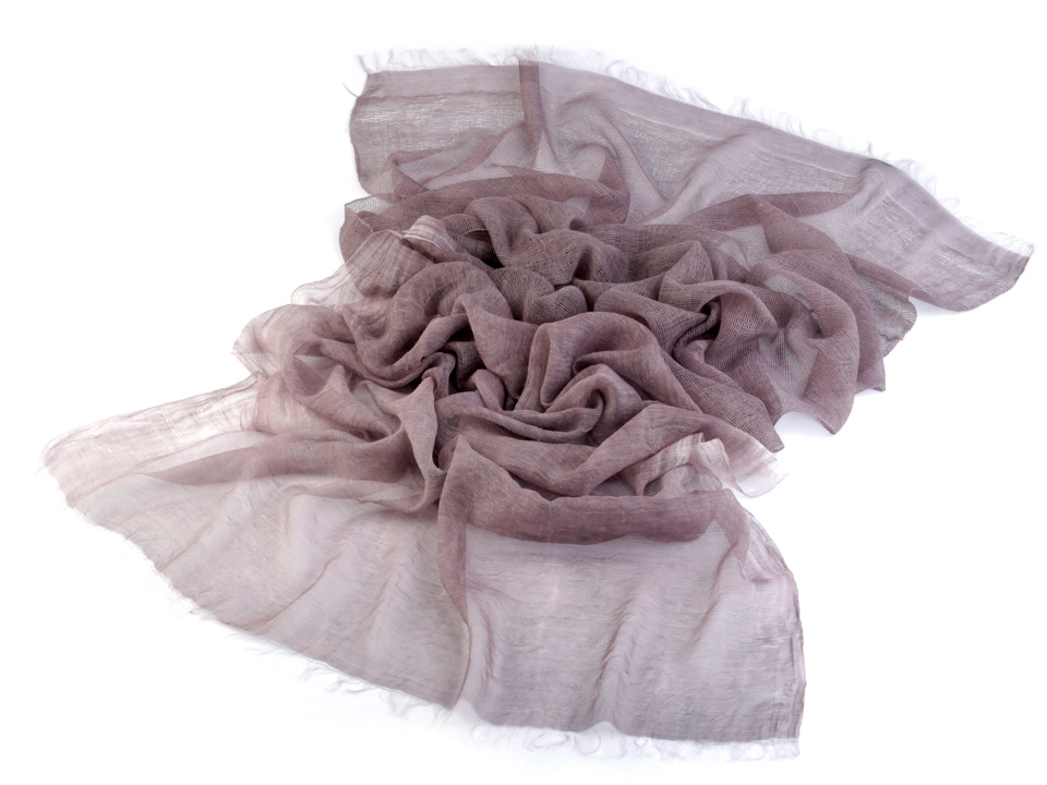 Z jedné strany má jemnou batiku. Každá batika je originální, šátky nejsou úplně stejné. Druhá polovina šátku má efektně proužkovanou strukturu materiálu. Šátek je velice hebký a lehounký, příjemný na dotek. Celý šátek má jemný lesk.