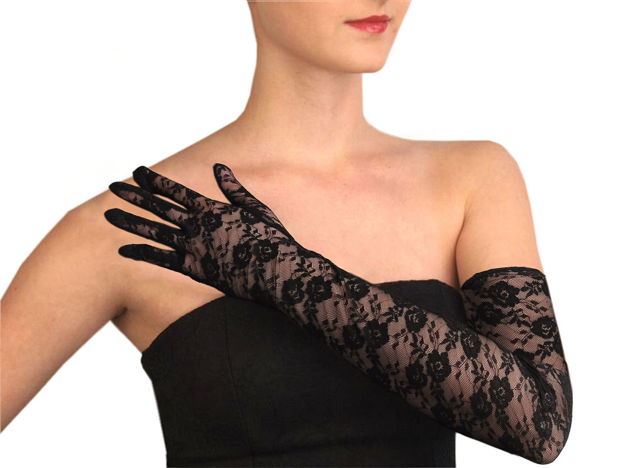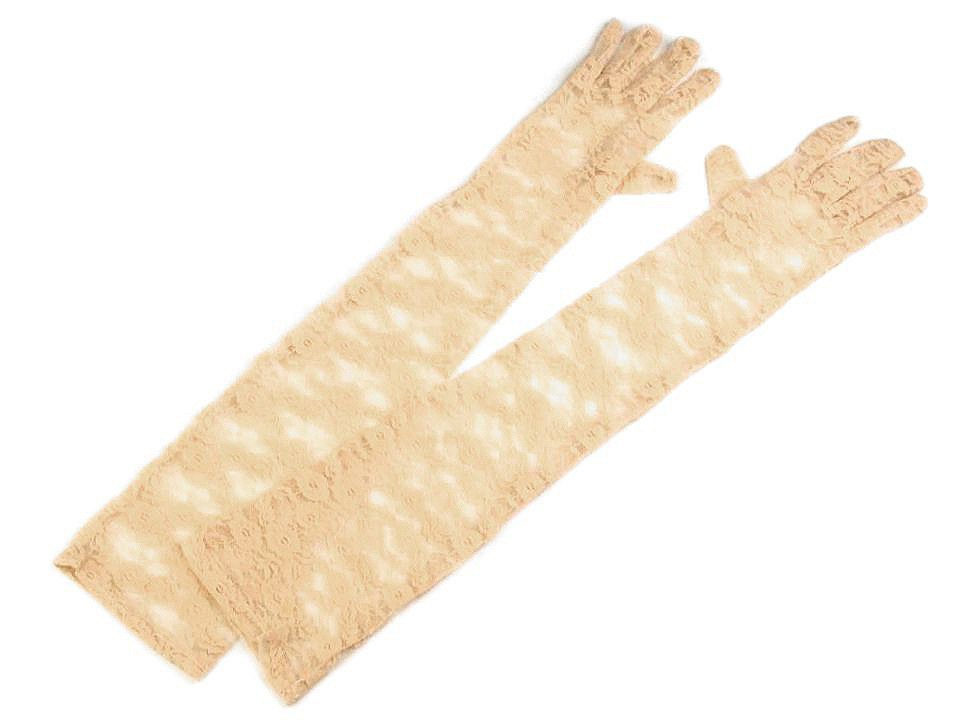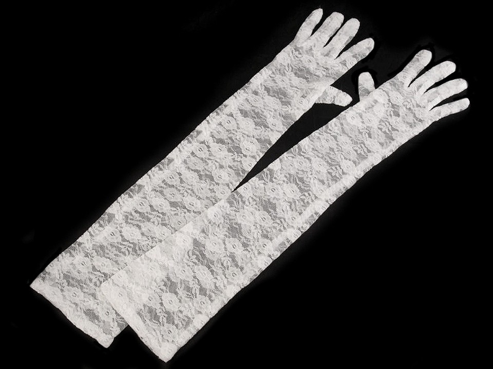 Extra dlouhé společenské rukavice s krajkovým vzorem. Na dotek jsou velmi příjemné, elastické, lehce se přizpůsobí ruce své majitelky. Dlouhé rukavice navíc zeštíhlují postavu.