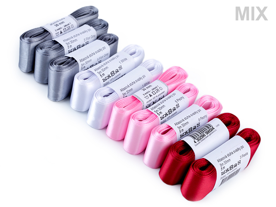 Atlasovou stuhu využijete k dekoračním účelům. Z jedné strany se leskne. Nedoporučujeme ji prát.