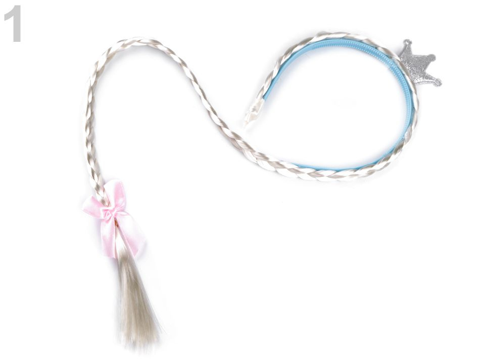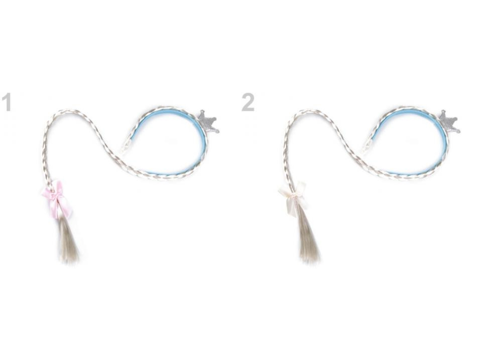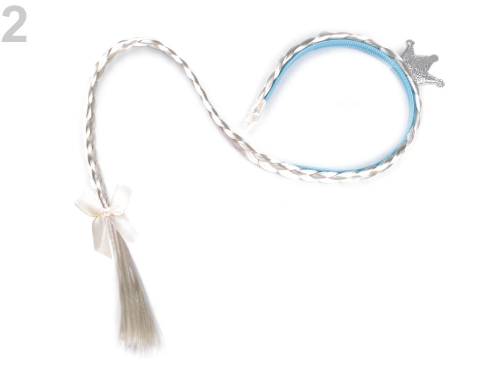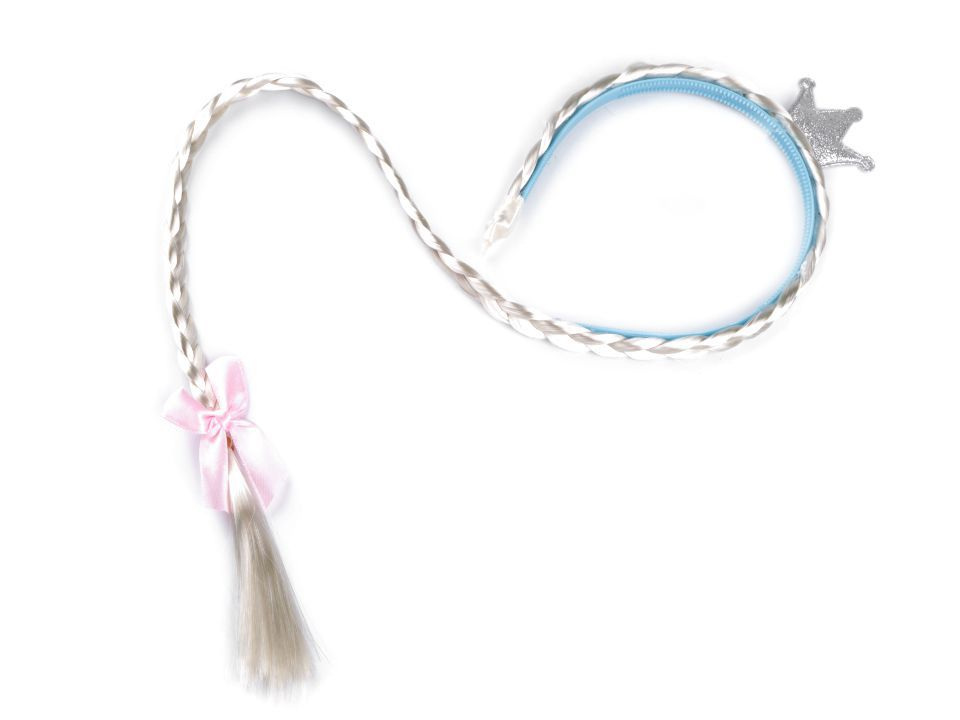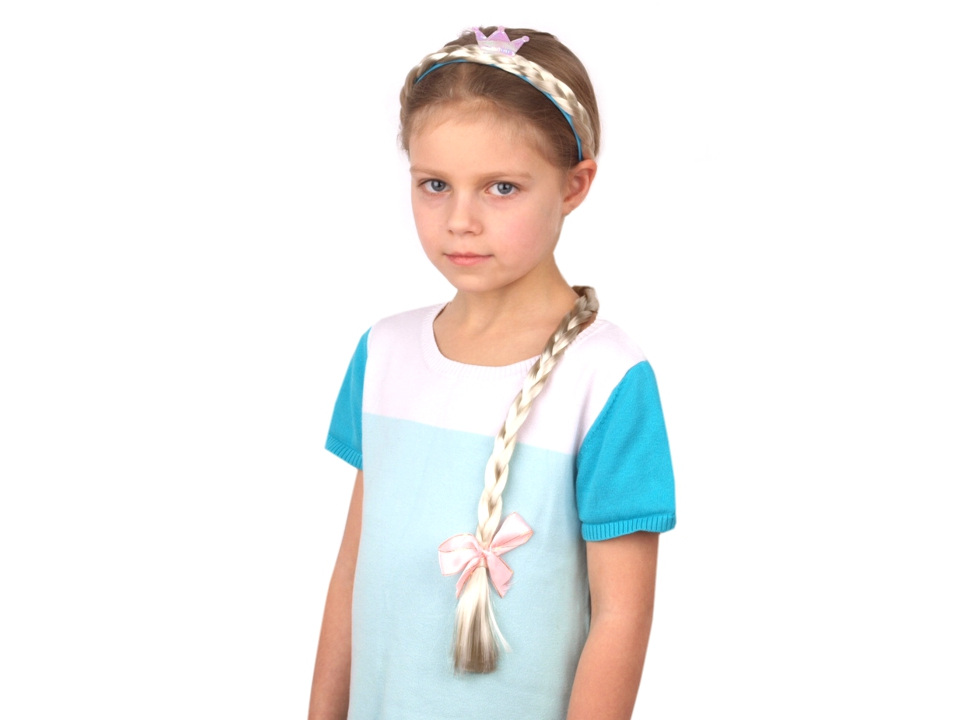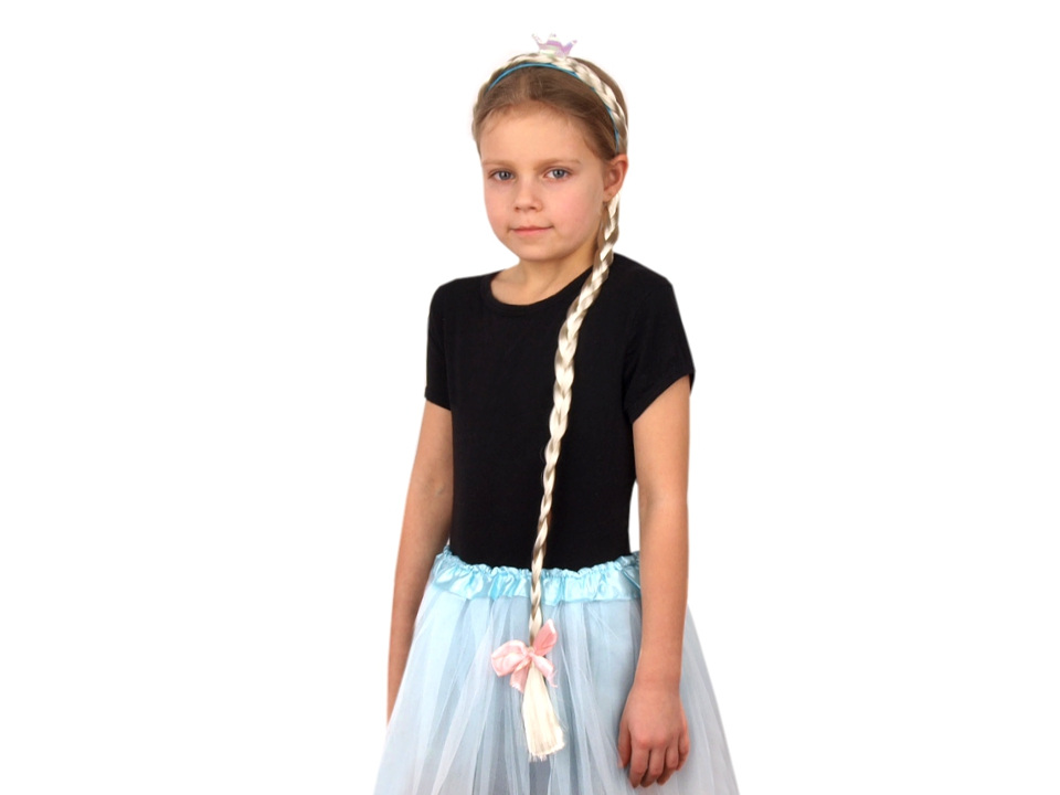 Čelenka s dlouhým pleteným copem a korunkou vás promění v okouzlující princeznu. Využijete ji na karnevalu, maškarním plese, párty či jiných společenských akcích, kde zažijete hodně legrace. Copánek je zakončený roztomilou mašlí.