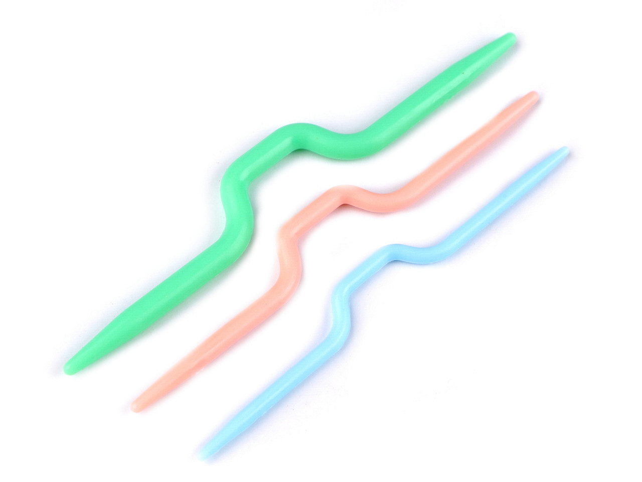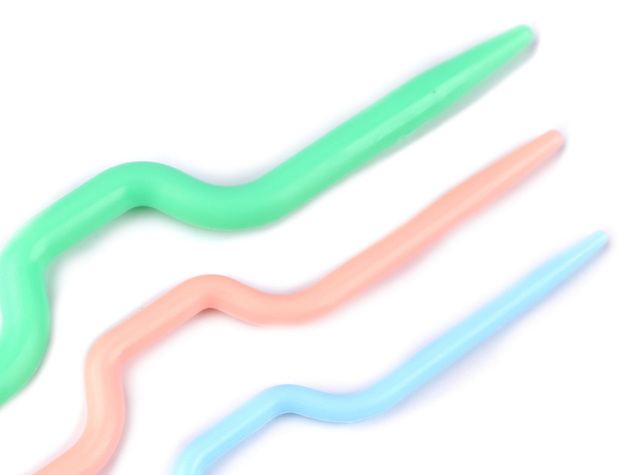 Pomocné prohnuté jehlice využijete pro pletení copánkového vzoru. Jsou vyrobené z plastu, velmi lehké a příjemné do ruky.