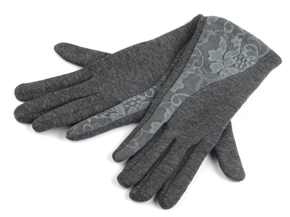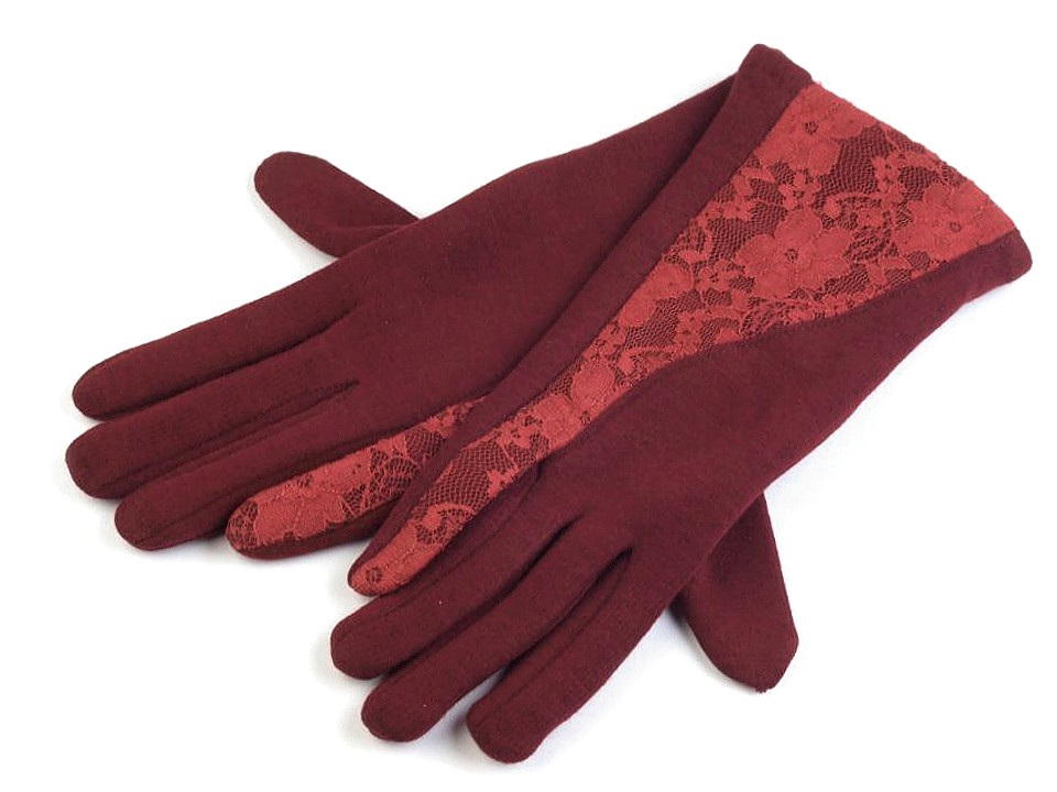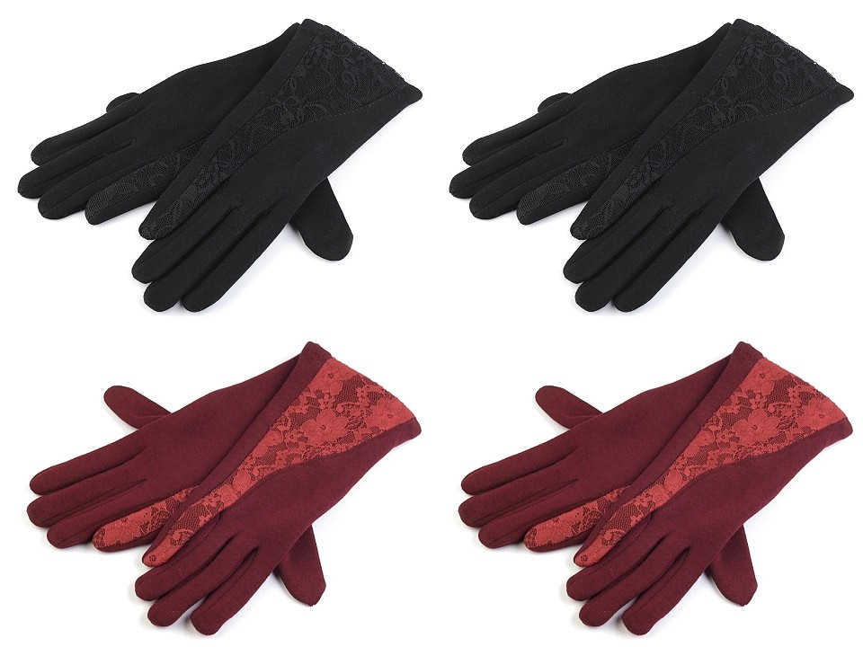 Elegantní dámské rukavice s krajkou jsou vyrobené z teplého pružného úpletu, který se ruce skvěle přizpůsobí. Horní strana je ozdobená krajkovou aplikací od malíčku až do konce rukavic. Uvnitř je jemný plyš, jenž je velice příjemný na dotek.