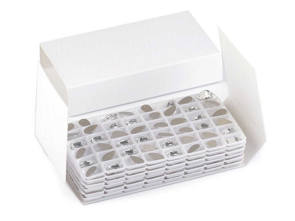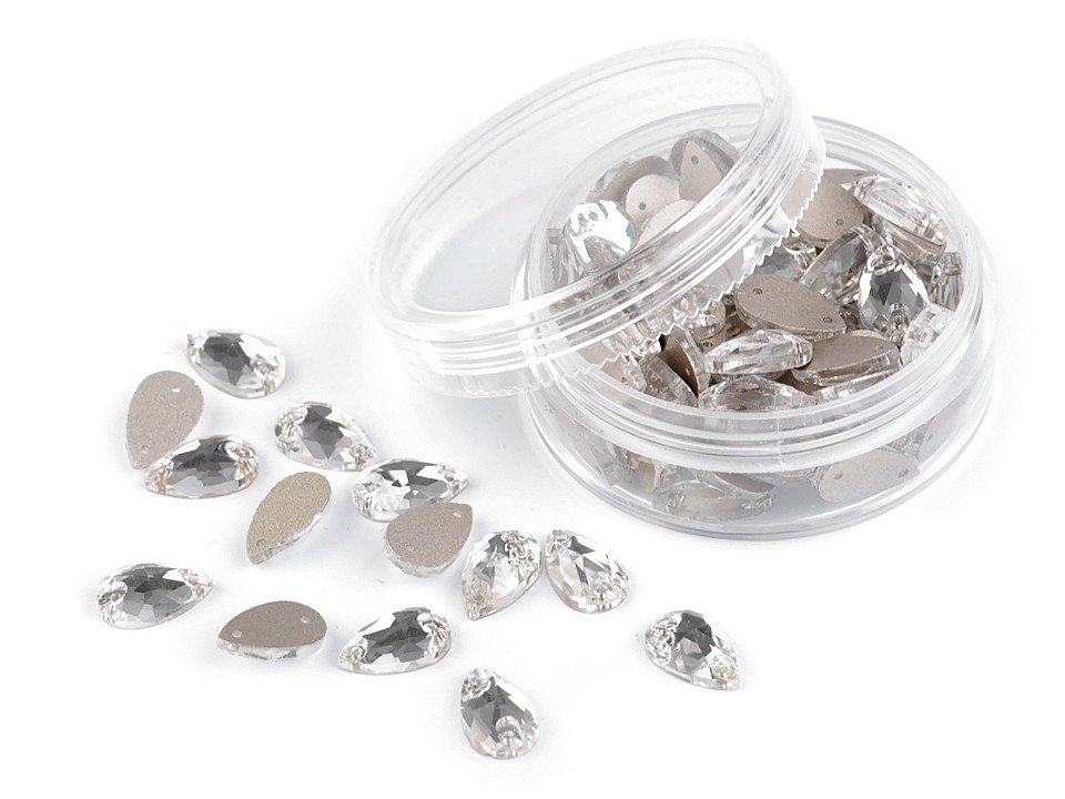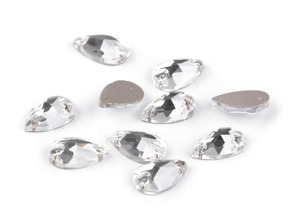 Precizně broušené kamínky ve tvaru kapky se efektně třpytí. V každém kamínku jsou dva otvory, které umožňují jednoduché našívání. Kamínky využijete při výrobě šitých šperků nebo zdobení oděvů. Dokonale vyniknou na společenských šatech, halenkách a doplňcích, jako jsou kabelky, psaníčka, klobouky apod.