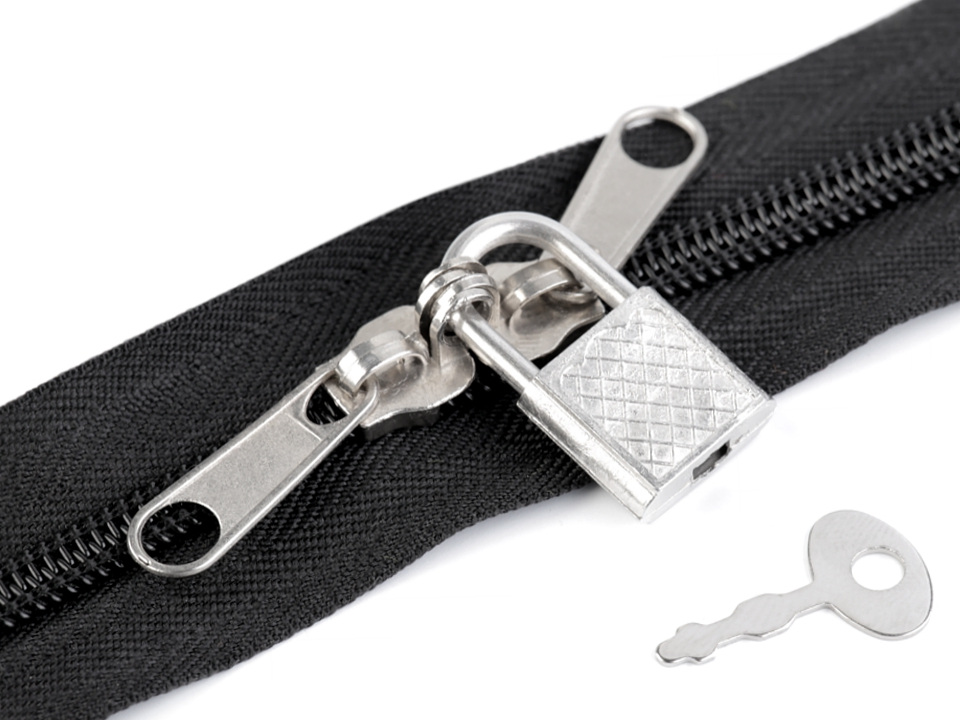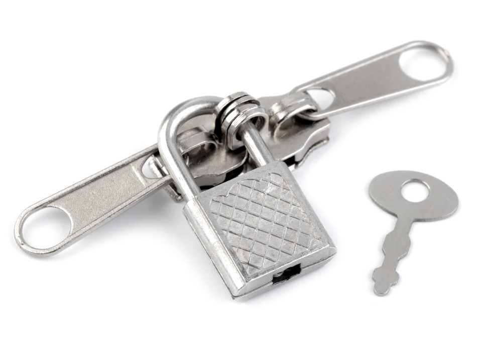 Kovový jezdec je doplněný zámkem s klíčem. Využijete ho na batohy, kufry, kabelky a na všechna místa, která potřebujete mít zamčená.