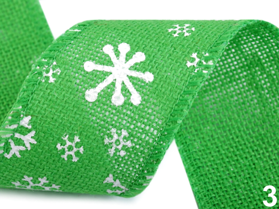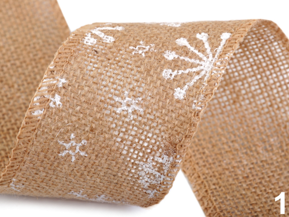 Jutová stuha s potiskem vloček dodá vašim dekoracím zimní atmosféru. Okraje jsou začištěné, takže nehrozí třepení. Potisk je jednostranný.