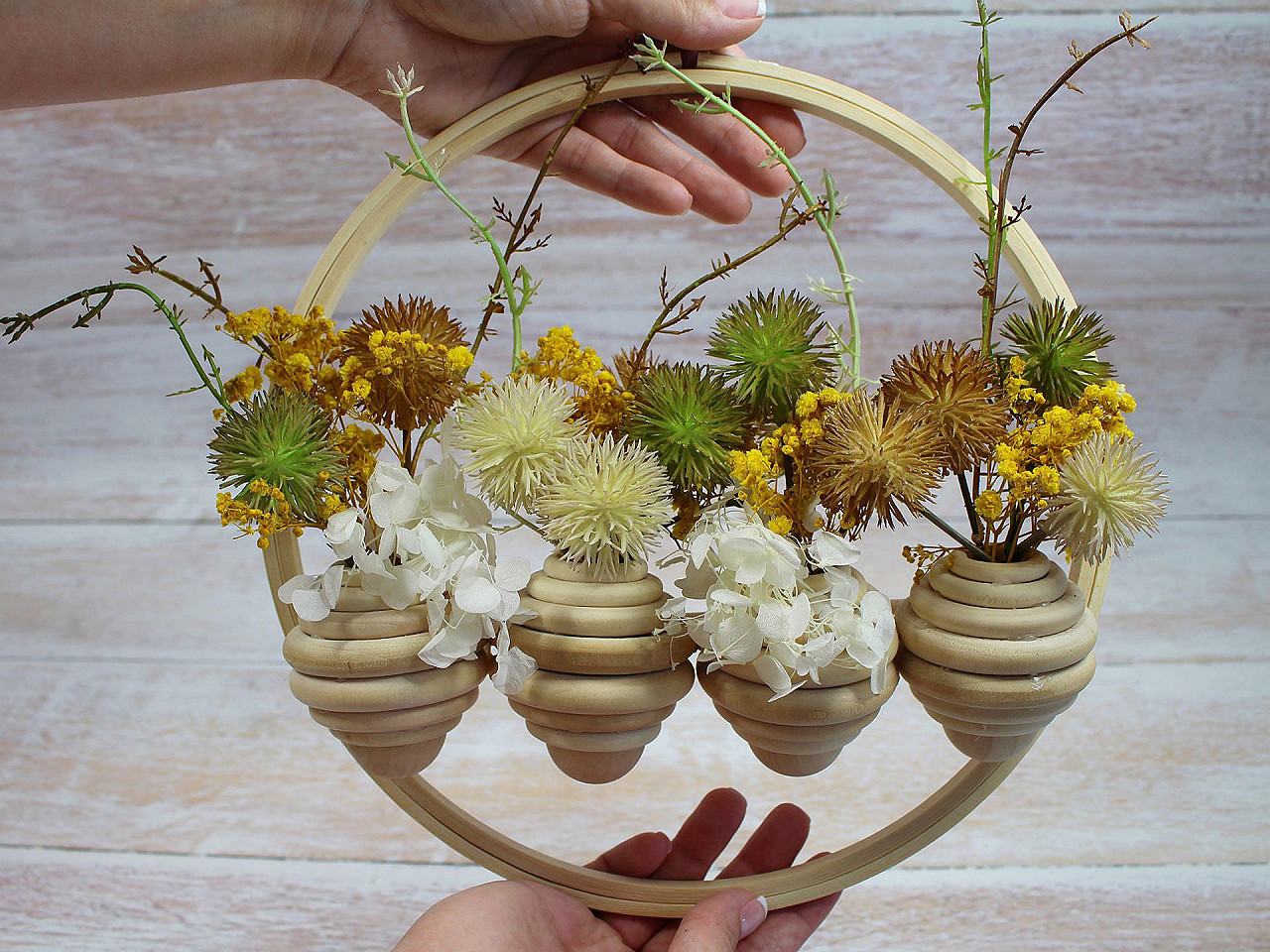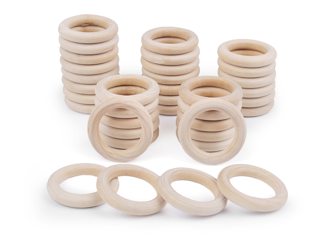 Dřevěné kroužky slouží k uchycení záclony nebo závěsu. Využijete je ale také na výrobu lapačů snů, náhrdelníků apod.
