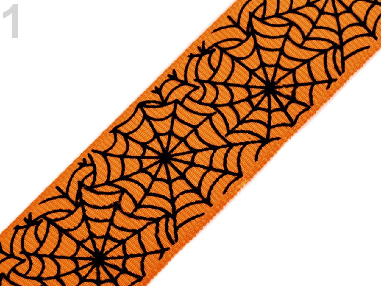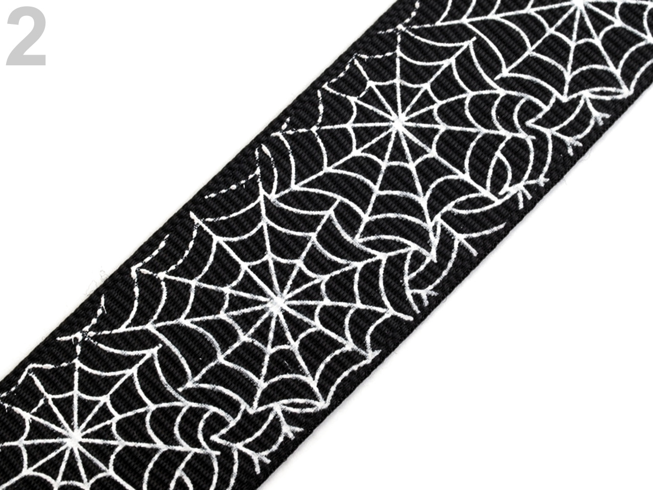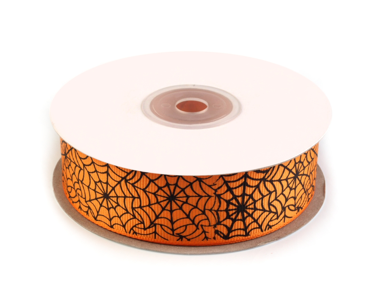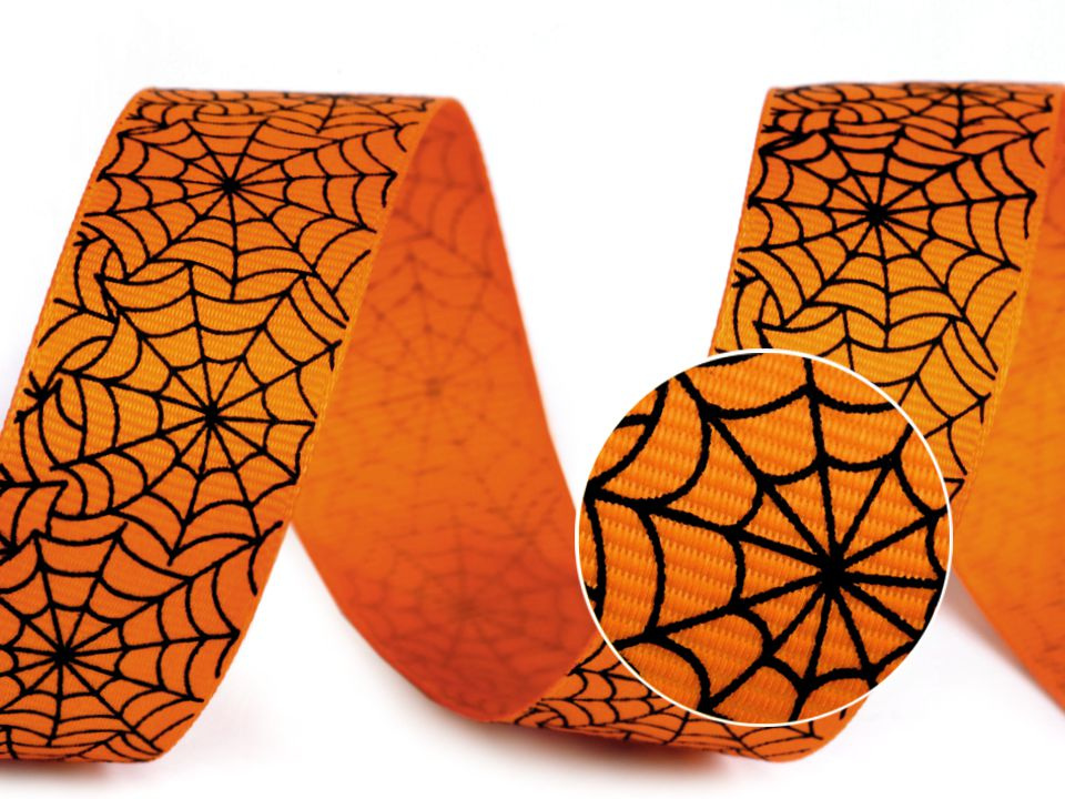 Rypsová stuha s potiskem pavučiny se skvěle hodí na halloweenské aranžování. Potisk je jednostranný.
