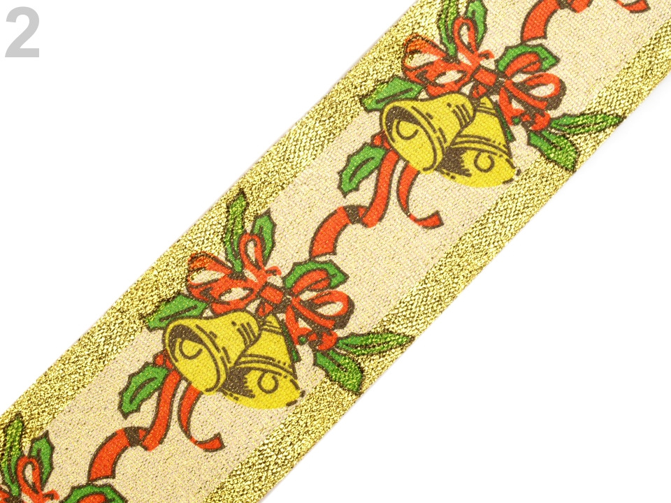 Tkaná stuha s vánočními motivy vás zaujme svým luxusním vzhledem, který jí dodává třpytivý lurex.