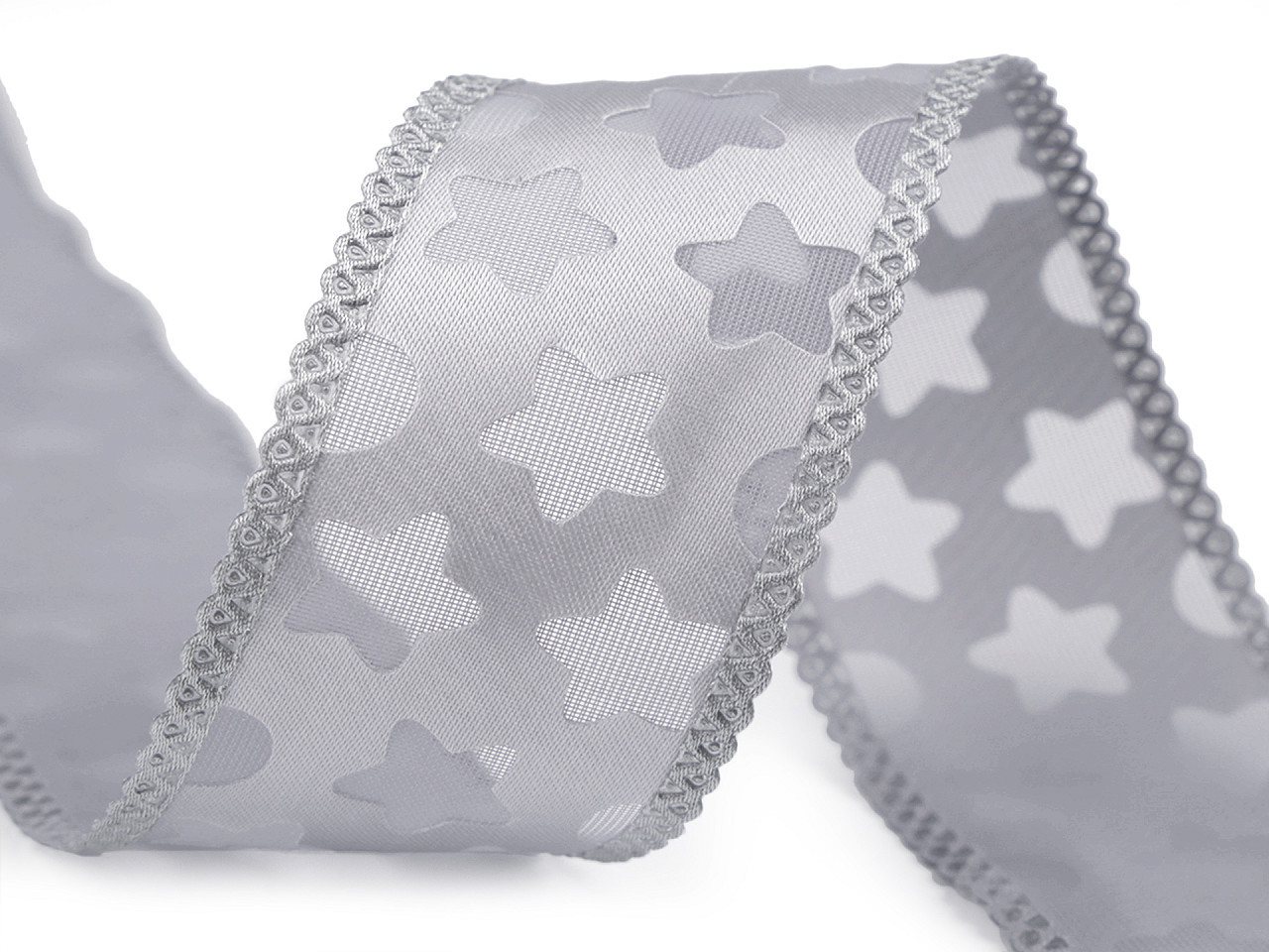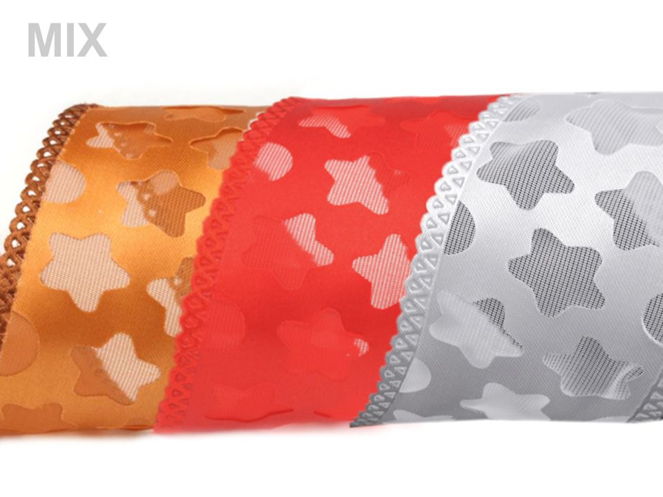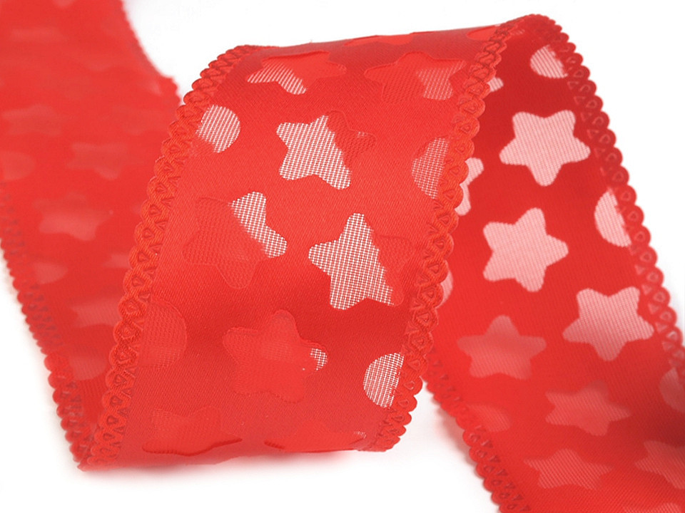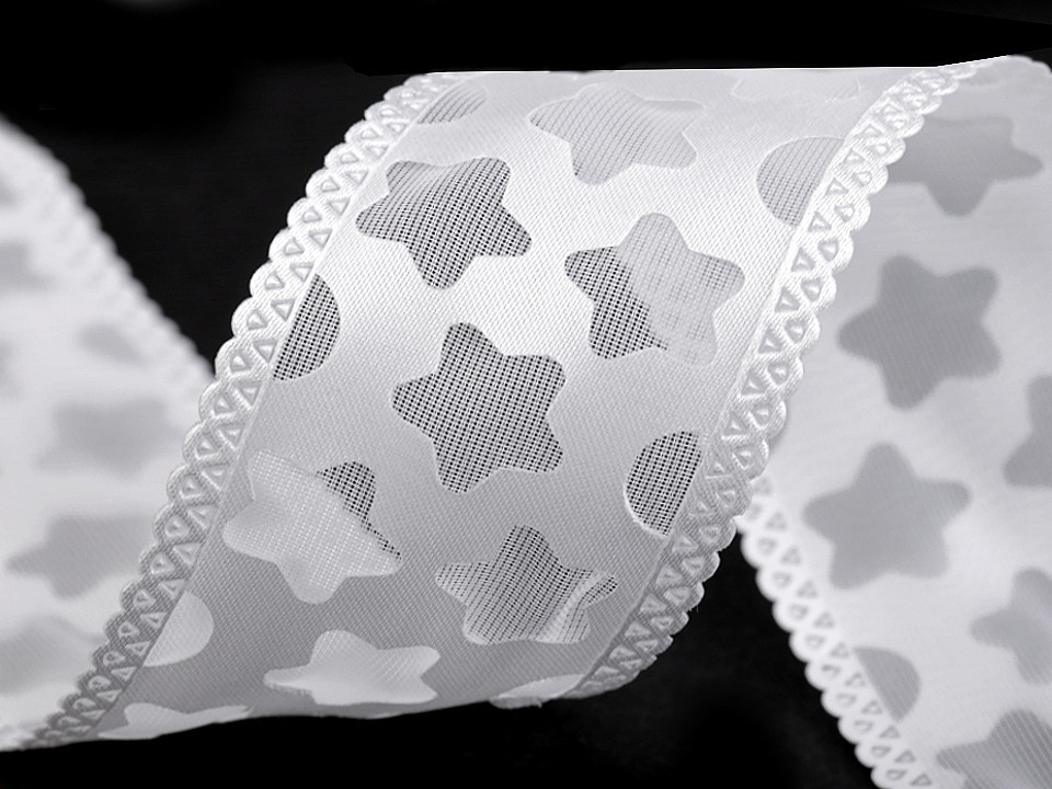 Efektní stuha je zvláštní svým zpracováním - má dvě vrstvy. Na první vrstvě jsou vysekávané hvězdy, druhá je podkladová.