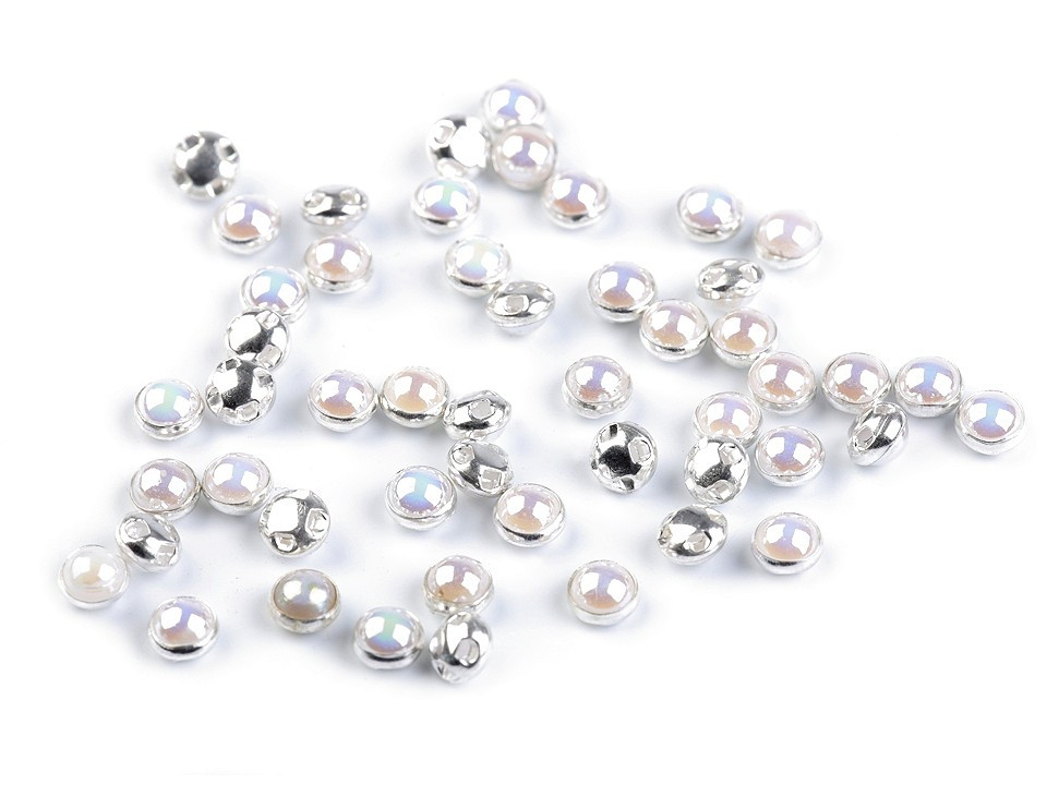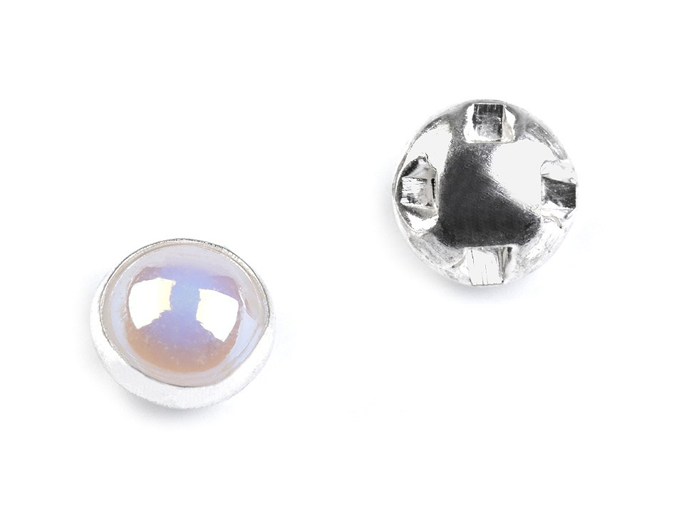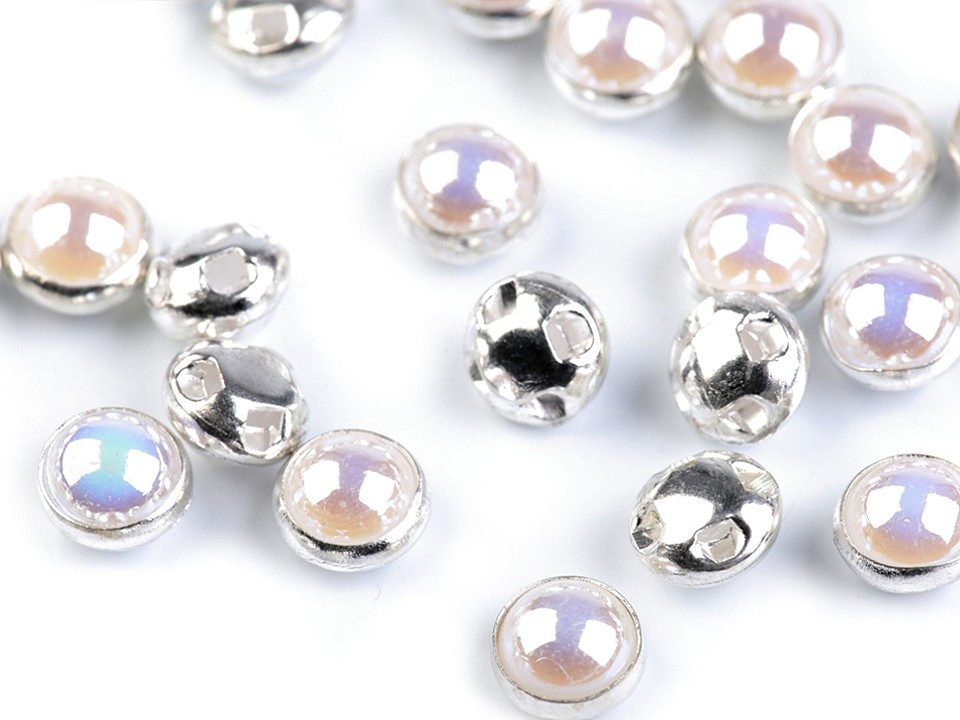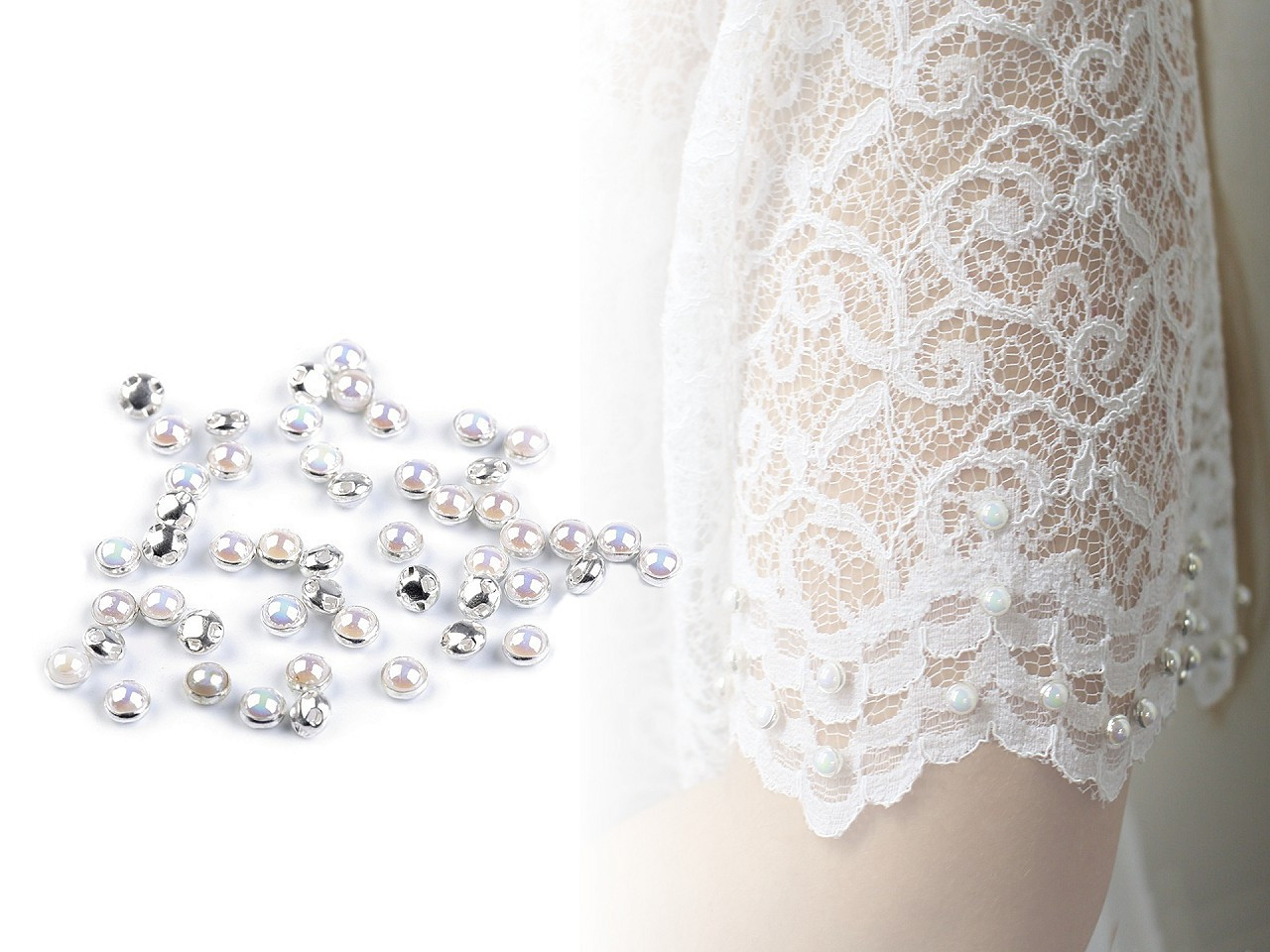 Našívací korálky mají tvar půlperle s AB efektem, díky tomu hází jemné barevné odlesky. Korálky jsou vhodné na svatební šaty, šaty pro družičky, bolerka, saka, rukavice, korzety a další doplňky. Využijete je také na zdobení látkových čelenek do vlasů nebo psaníček.
