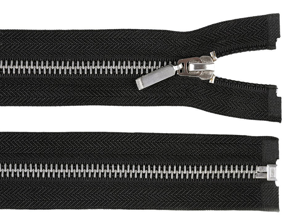 Mosazný zip je pevný a vyrobený z kvalitního materiálu. Jeho zoubky a jezdec mají barvu niklu. Zip je vhodný k našití na kabáty nebo delší mikiny a bundy.