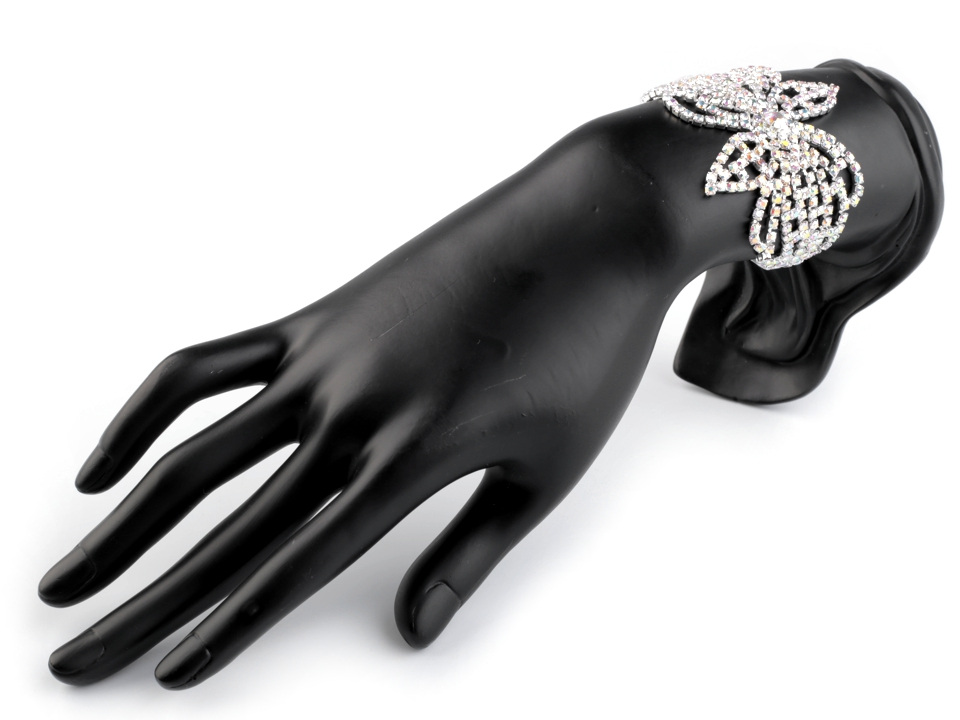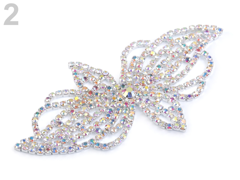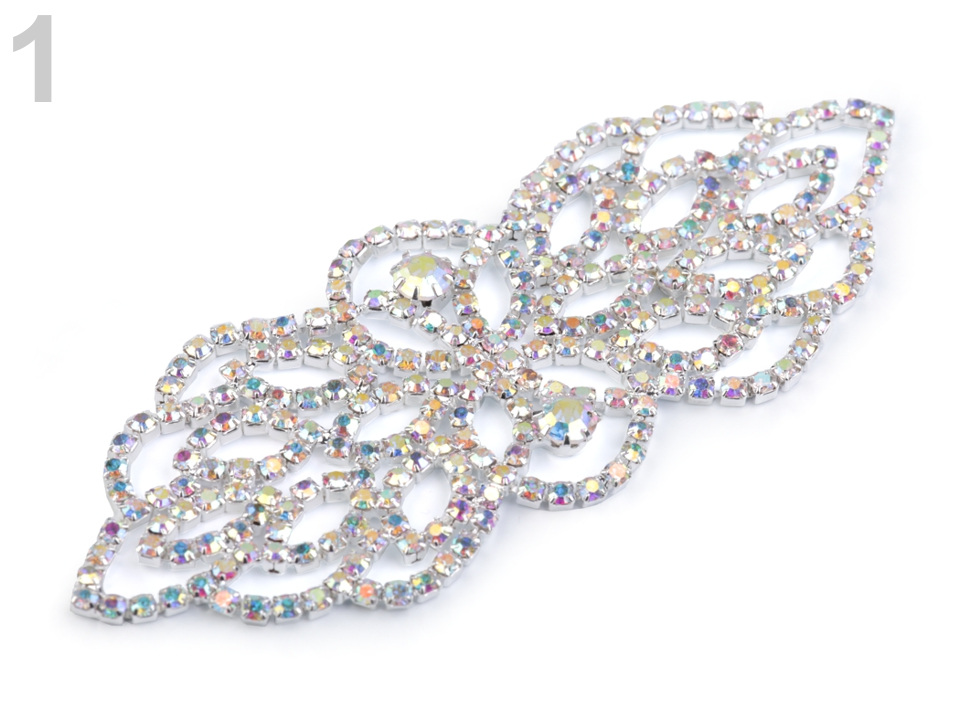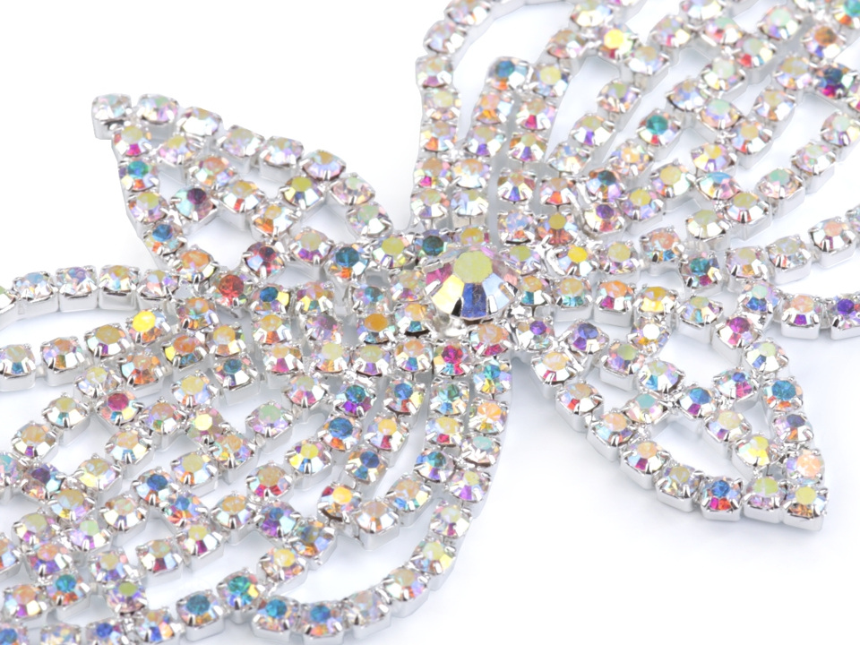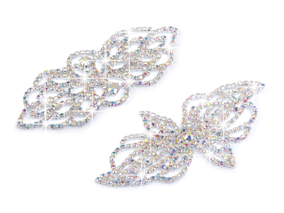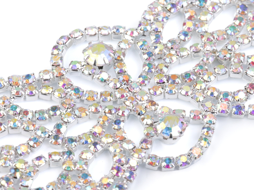 Luxusní štrasová aplikace s AB efektem je měkká, přizpůsobí se jakémukoli tvaru. Můžete ji našít či přilepit na oblé věci. Je vhodná na ozdobení oděvů i doplňků (rukavice, klobouky, kabelky, čelenky do vlasů apod.). Z aplikace si vyrobíte i efektní náramek.