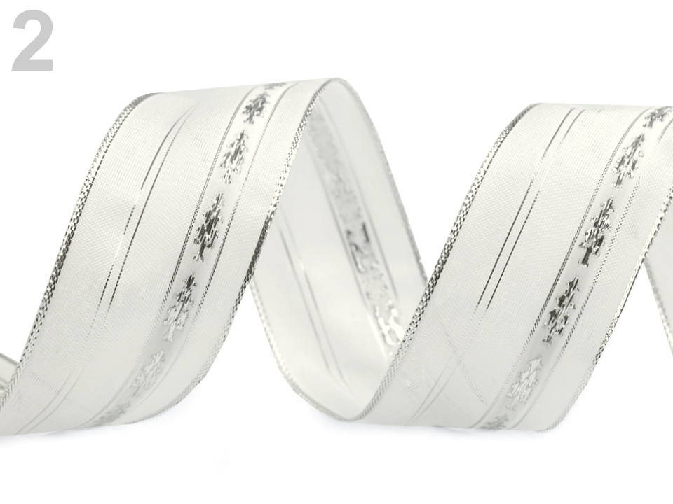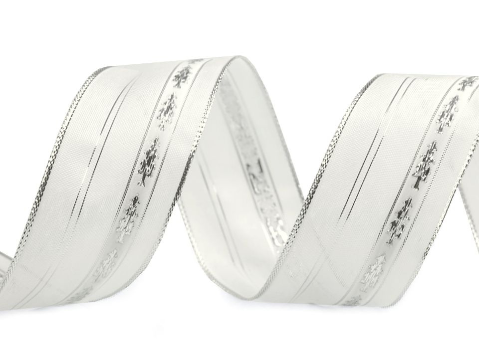Luxusní kombinovaná stuha najde široké uplatnění při tvorbě dekorací, zejména vánočních. Okraje stuhy jsou lemovány lurexem. V jedné třetině je ozdobená lurexovými stromečky. Stromečky mají pevný, neprůsvitný podklad, zbytek stuhy je poloprůsvitný. Kovový drát po stranách zajišťuje výbornou tvárnost.