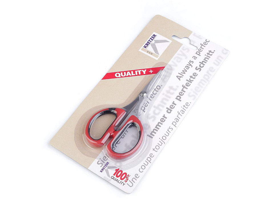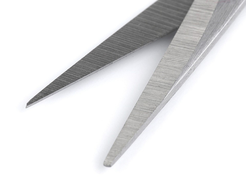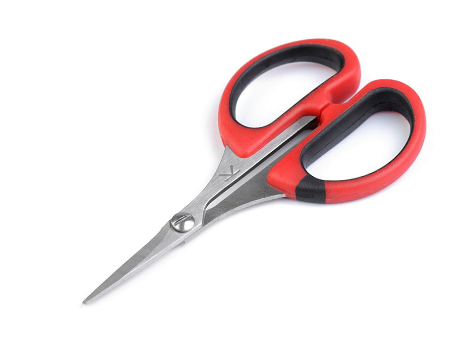 Kvalitní univerzální nůžky s mikrozoubky mají plastovou rukojeť. Díky velikosti jsou vhodné na pomocné odstřihávání, např. papíru, přízí i tenčích látek.