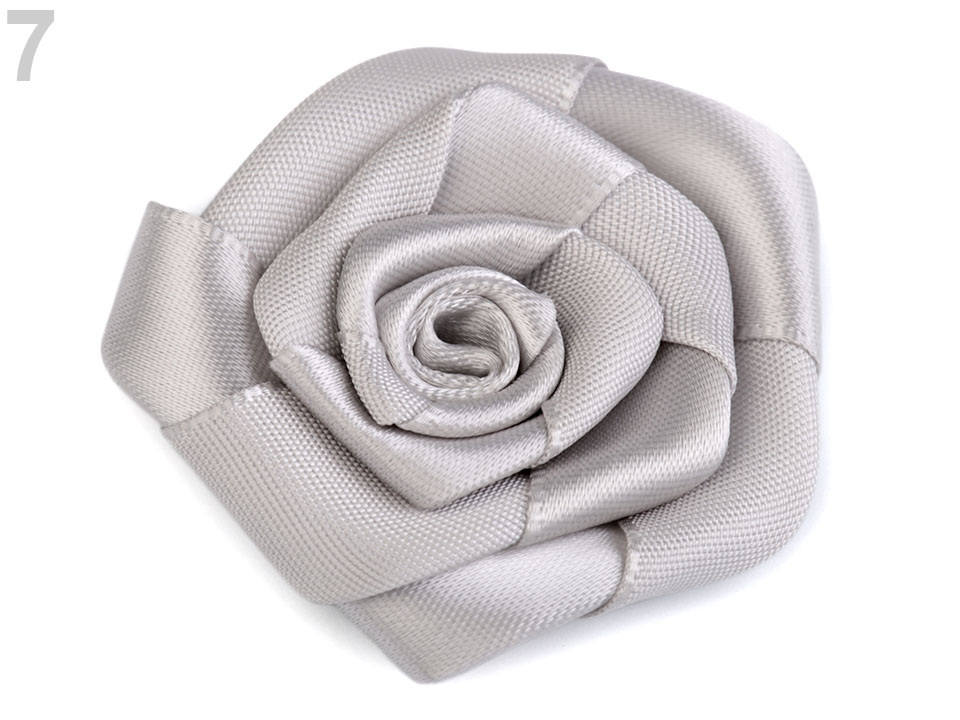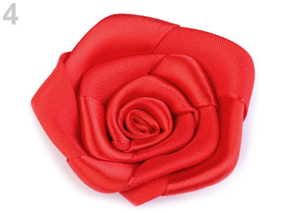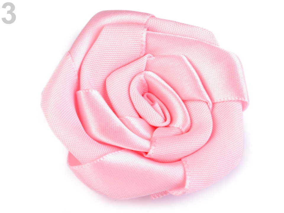 Skládané růže se jemně lesknou. Jsou vyrobené z kvalitní saténové stuhy.