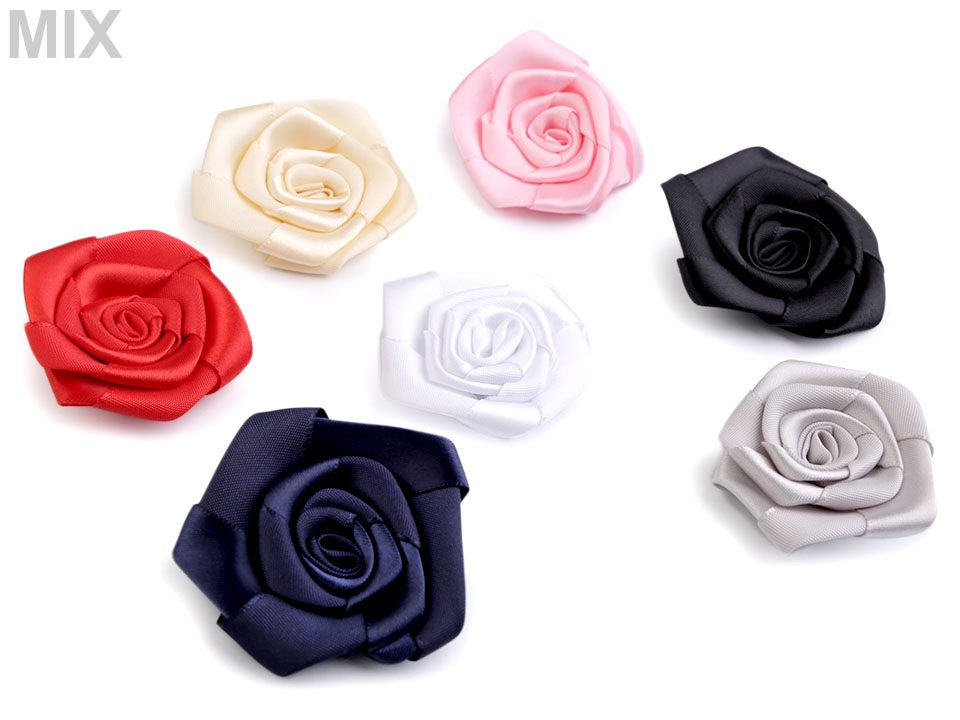 Použití: Růže jsou vhodné na ozdobení svatebních šatů i šatů družiček, na výrobu broží, ozdob do vlasů apod. Využití najdou i ve floristice - například ve věncích nebo ve svatebních kyticích. Květiny můžete přišívat nebo lepit.