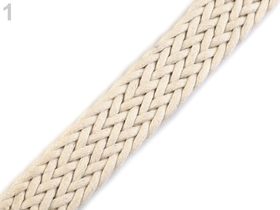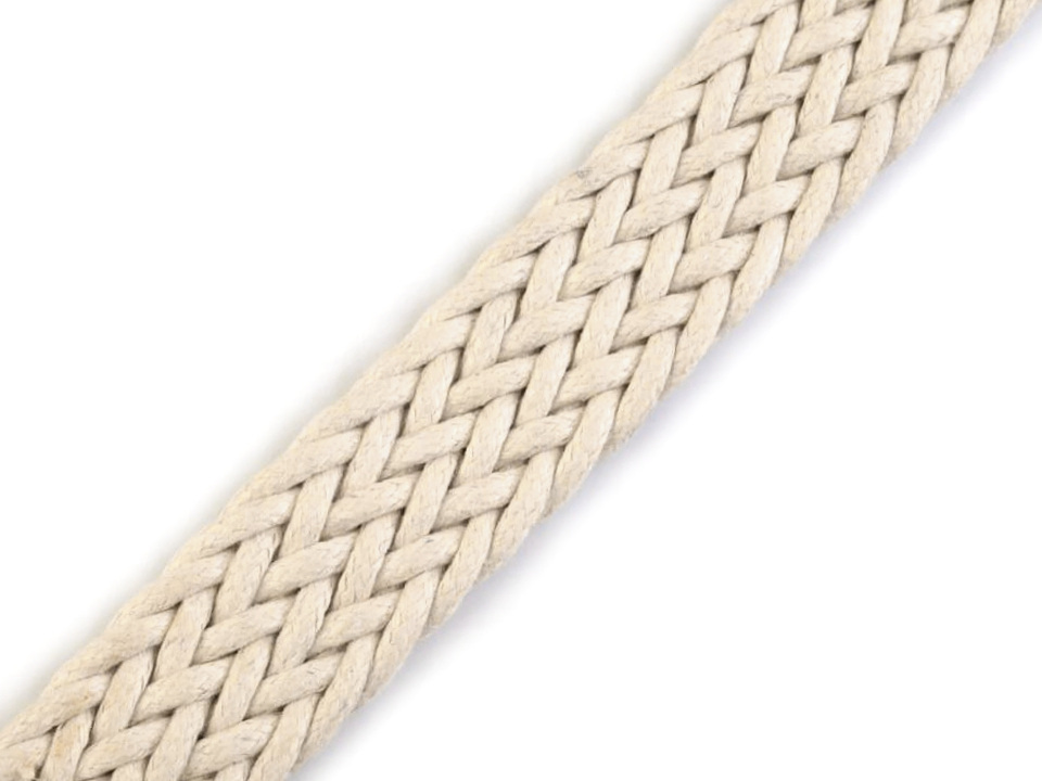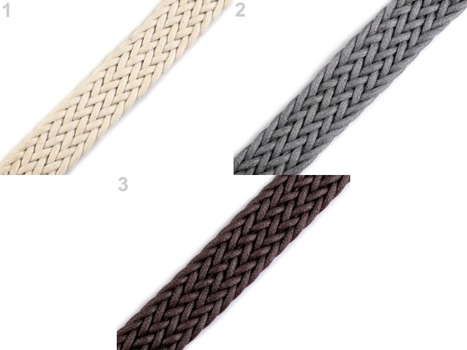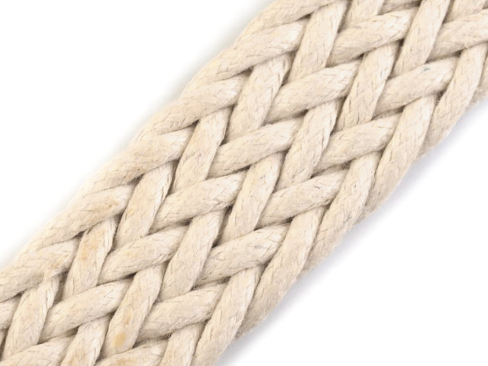 Použití: Popruh využijete k výrobě uch na kabelky a tašky. Je vhodný také jako dekorační či funkční materiál bytových doplňků. Před ustřihnutím doporučujeme šňůru dokola zalepit lepící páskou, aby se nerozplétala.