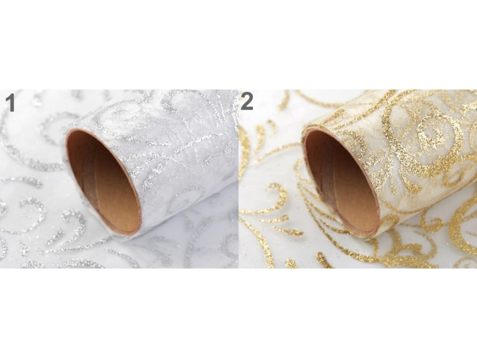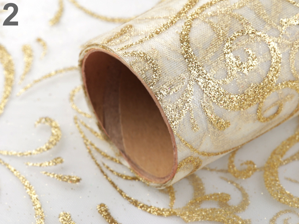 Organza s třpytivými glitrovými ornamenty působí svým vzhledem velmi slavnostně. Její design je nápaditý a efektní.