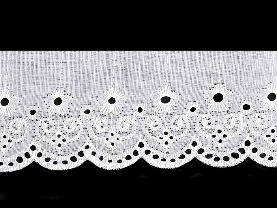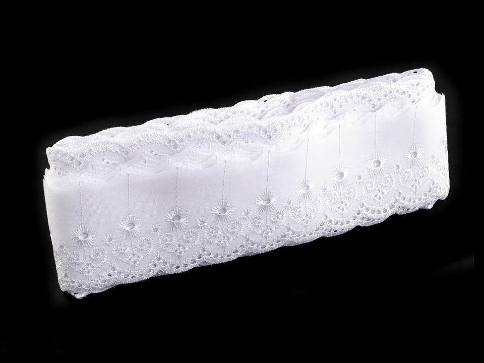 Použití: Madeirou můžete ozdobit oblečení (šaty, halenky, lehké sukně a prádlo). Často se používá i jako dekorace bytového textilu například polštářů, povlečení, deček, ubrusů, kuchyňských záclonek nebo dětských zavinovaček.