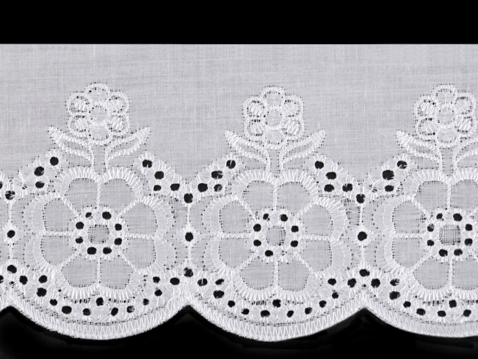 Madeira má efektní květinový vzor s dírkovou výšivkou. Okraj zakončují pravidelné obloučky.