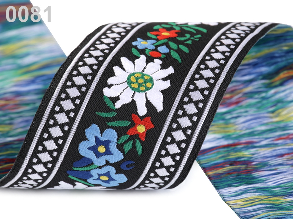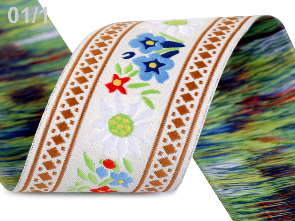 Krojovou vzorovku zdobí precizně propracovaný vzor s motivem květů. Vzorovky se tkají na jehlových stavech.