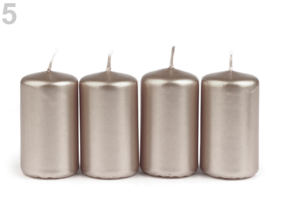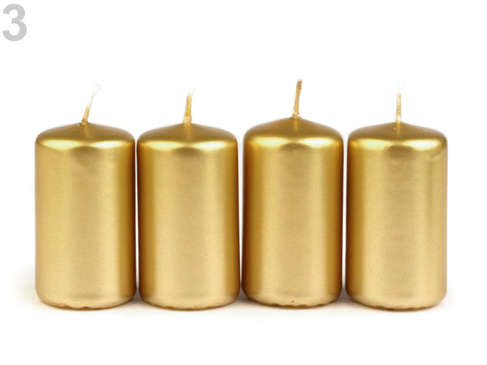 Adventní svíčky využijete ke zdobení adventních věnců i jiných dekorací. Jsou metalické.