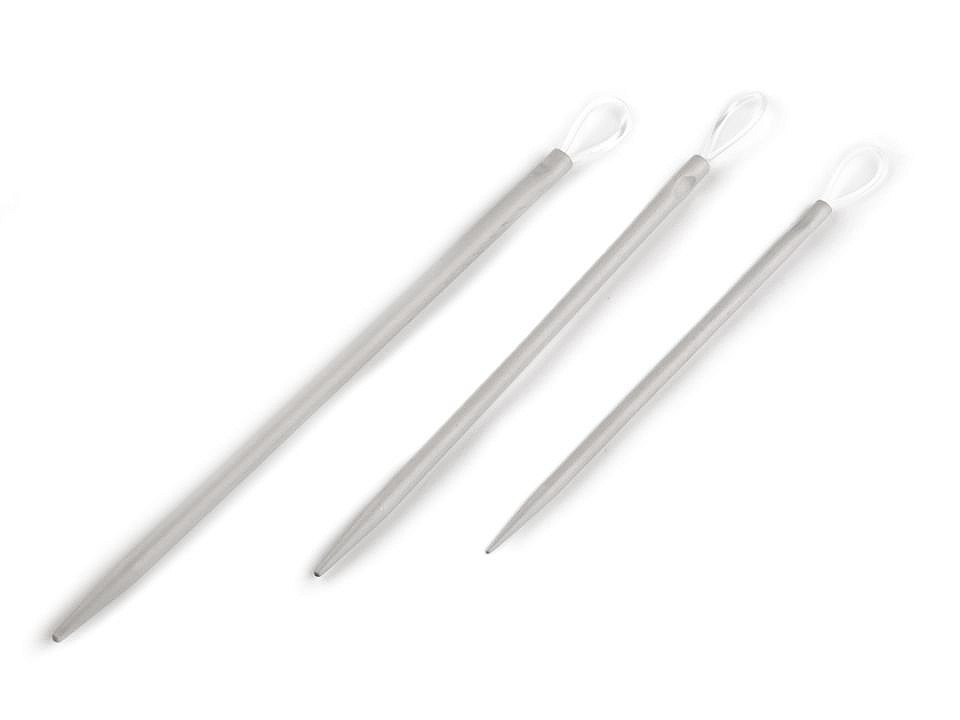 Jehly na vlnu jsou kvalitní, vyrobené z lehkého hliníku. Mají očko ze silonu, které je dostatečně velké, abyste jím provlékli vlnu.