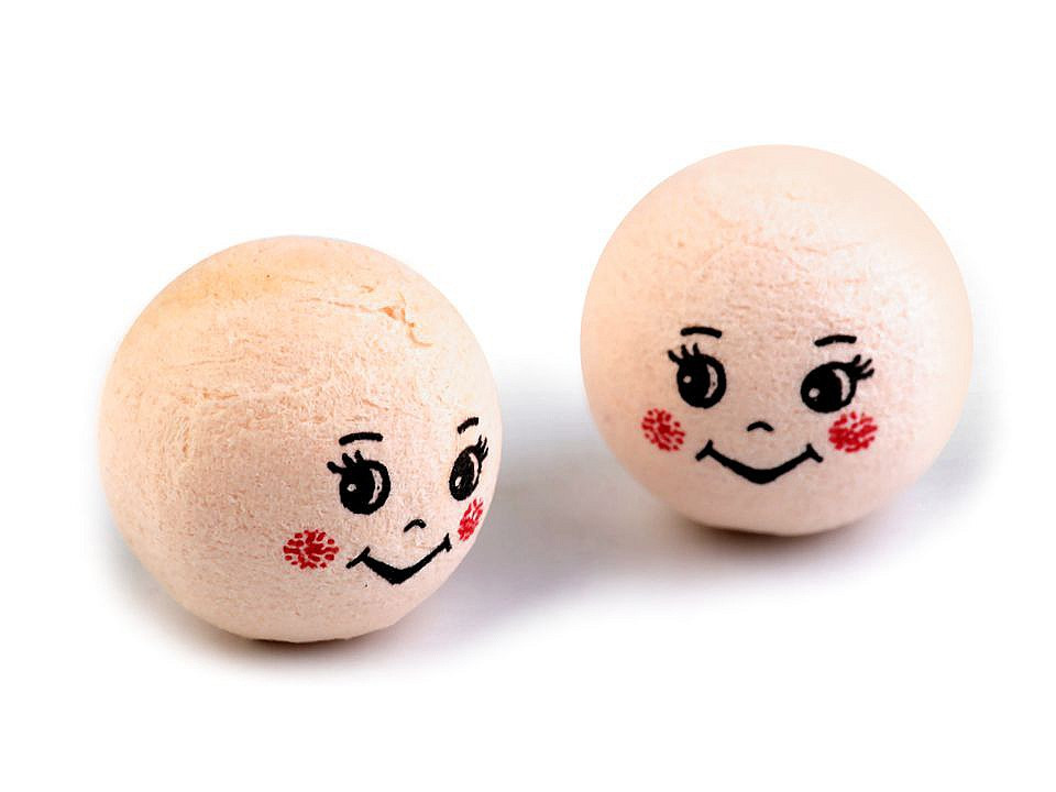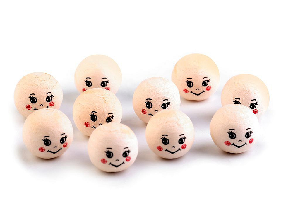 Vatovou hlavičku s obličejem využijete na výrobu různých postaviček, panenek, loutek, maňásků apod. Hlavička má zespodu malý otvor, do kterého můžete zapíchnout špejli či drátek a umístit například do květináče.