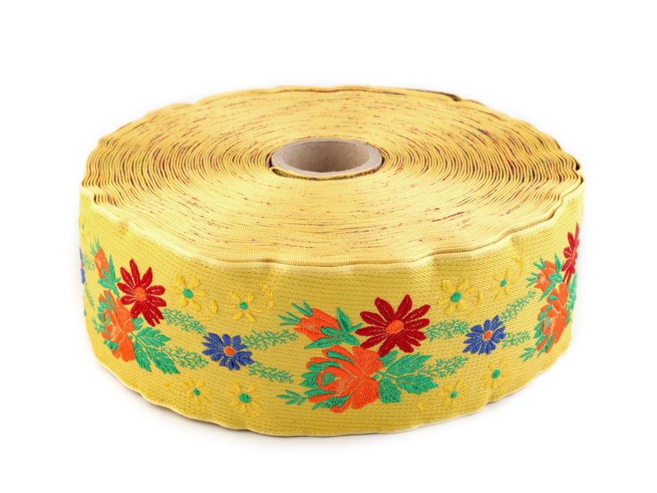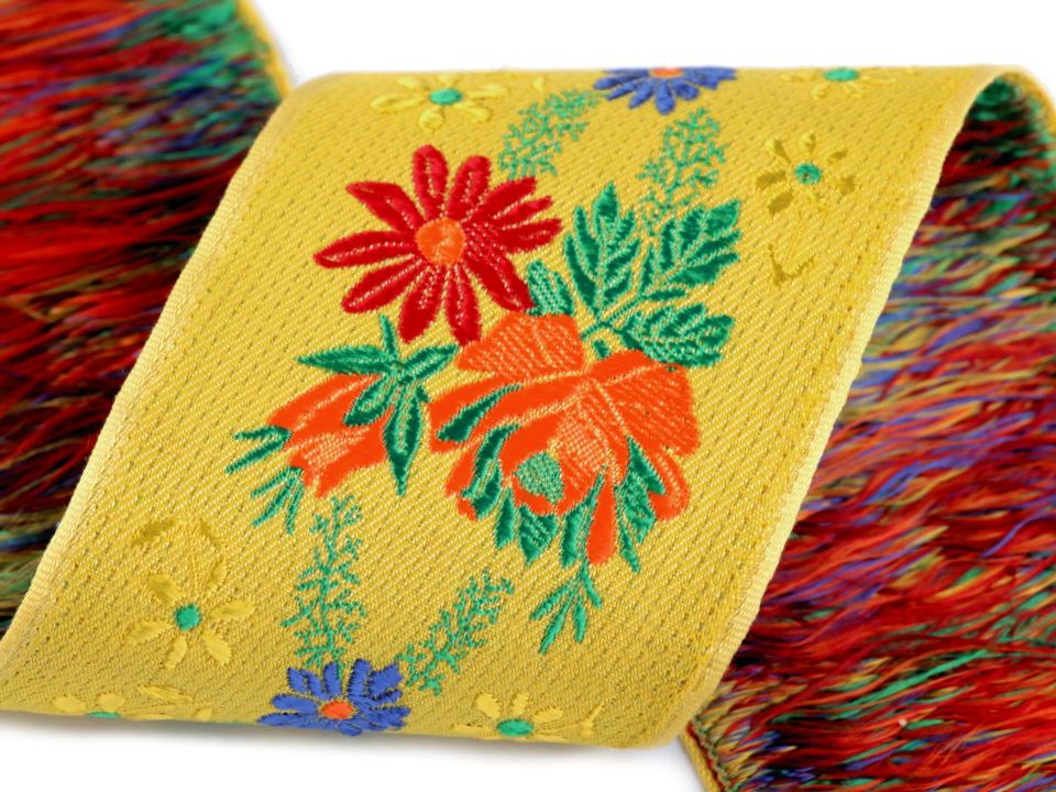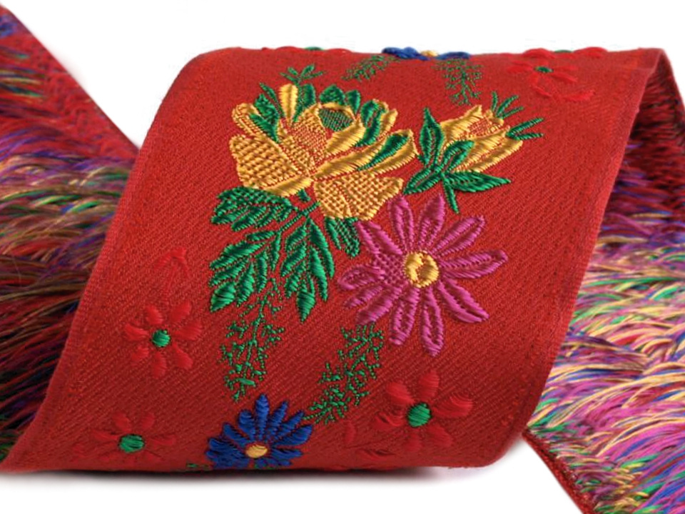 Krojovou vzorovku zdobí precizně propracovaný vzor s květy. Vzorovka je tkaná na jehlových stavech.