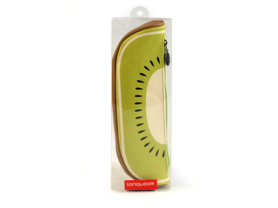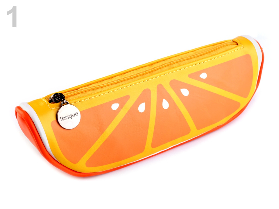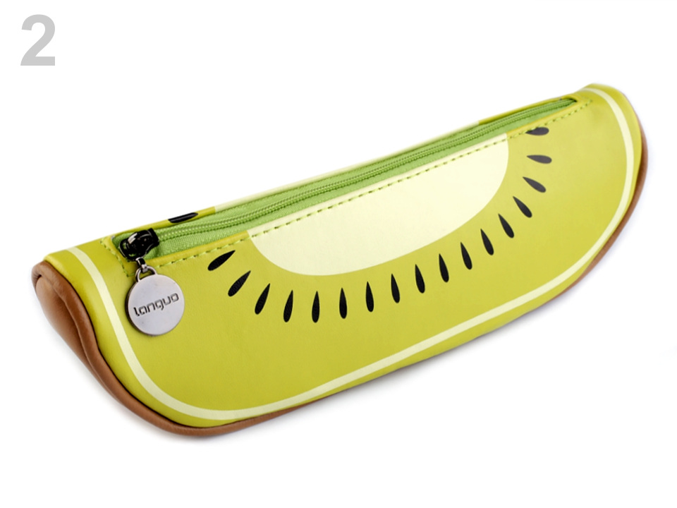 Díky eko kůži a střihu má pouzdro pevný tvar měsíčku. Je dlouhé, vejdou se do něj psací i kosmetické potřeby, hřebeny, nůžky apod. Je nenáročné na údržbu. Zapíná se na zip, uvnitř má podšívku.