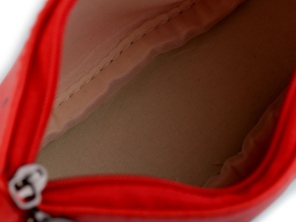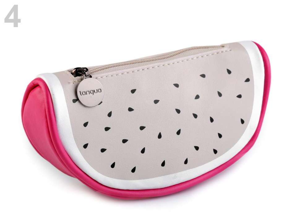 Díky eko kůži a střihu má pouzdro pevný tvar měsíčku. Je spíše malé, vejdou se do něj drobné kosmetické potřeby, malé nůžky, léky apod. Je nenáročné na údržbu. Zapíná se na zip, uvnitř má podšívku.