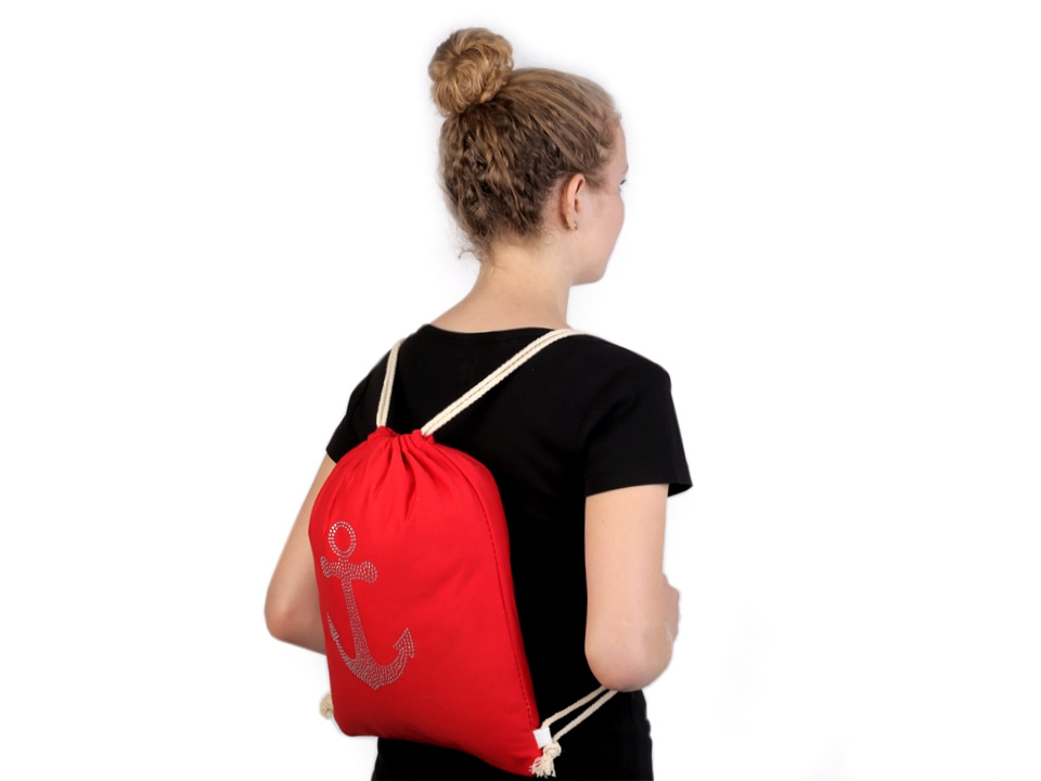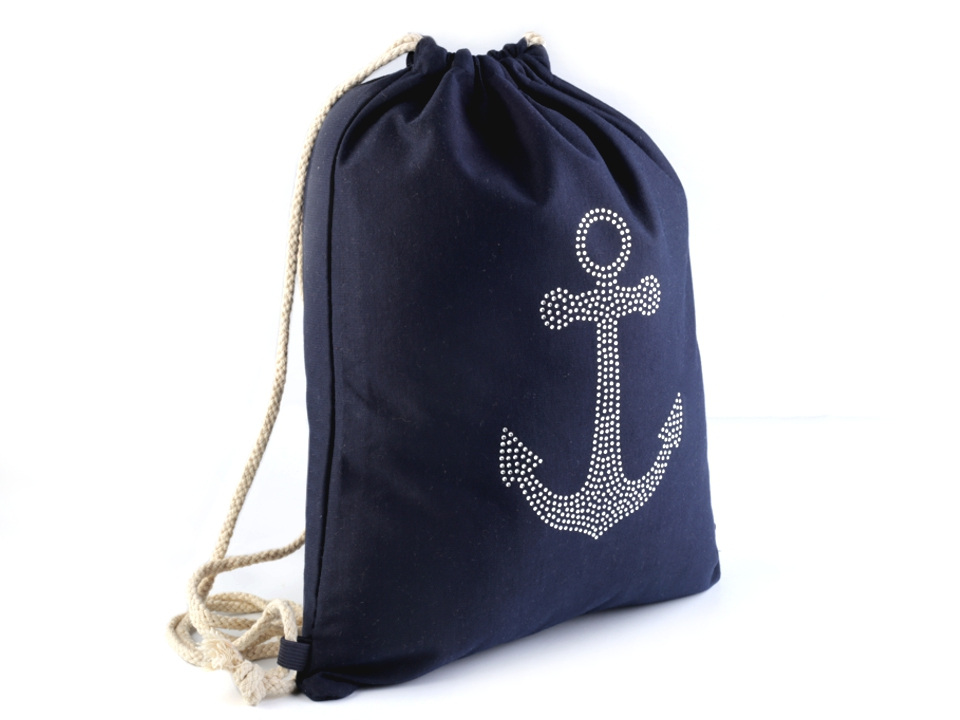 Vak na záda s designovou kotvou ocení milovníci námořnického stylu. Kotva je složena z lesklých hot-fixů.
