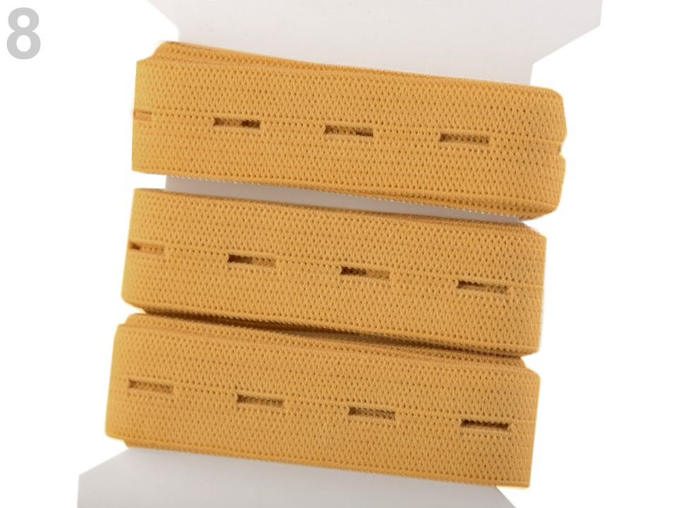 Použití: Pruženku využijete na zřasení lemu. Na vnitřní stranu látky přišijete knoflíky a připnutím na dírku regulujete zřasení.