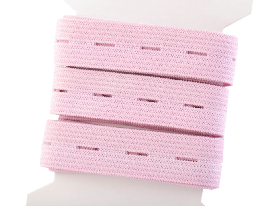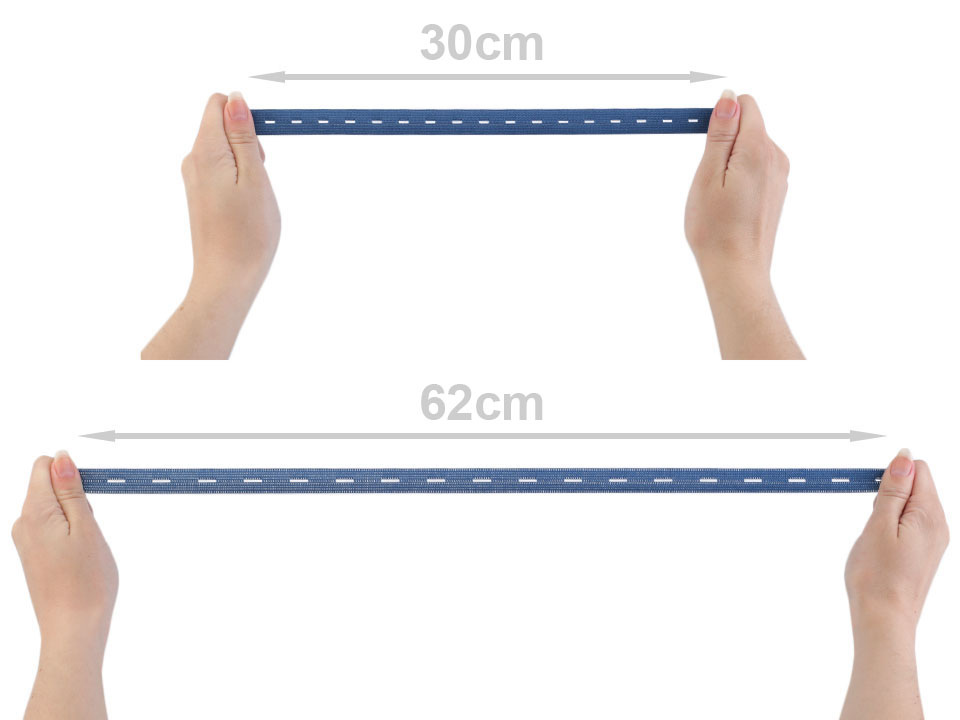 Dírková pruženka je utkaná z pružných vláken. Po roztažení se vrátí zpět do původního stavu.