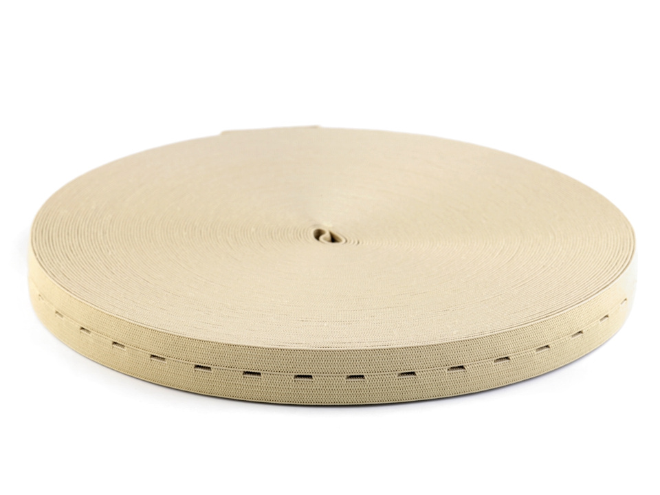 Dírková pruženka je utkaná z pružných vláken. Po roztažení se vrátí zpět do původního stavu.