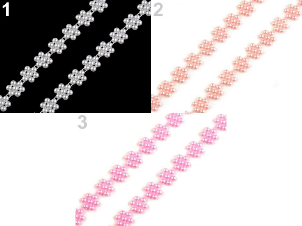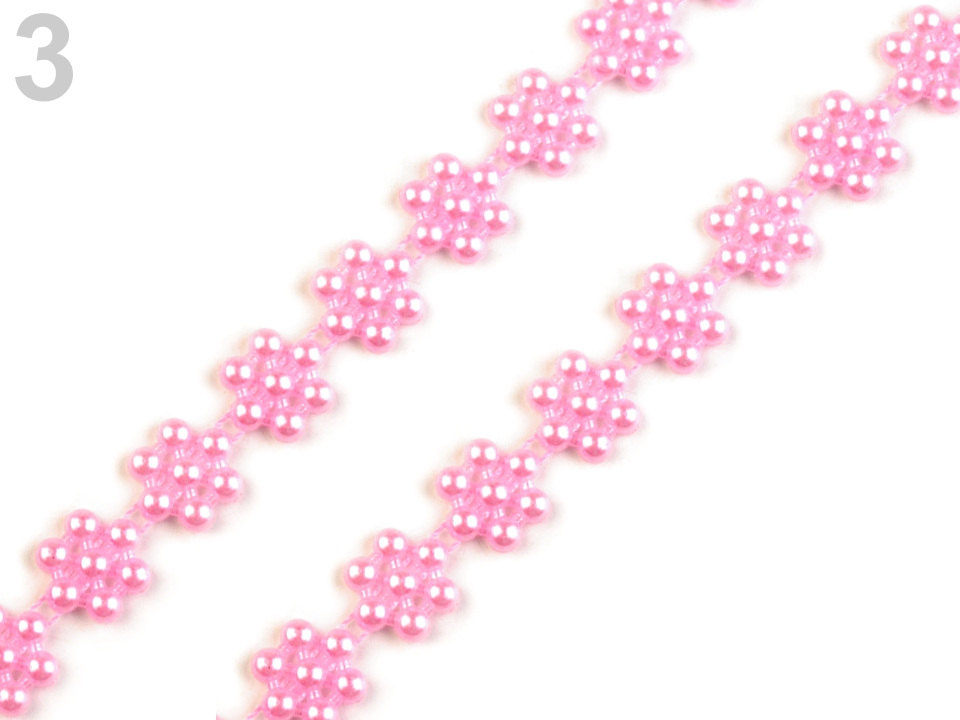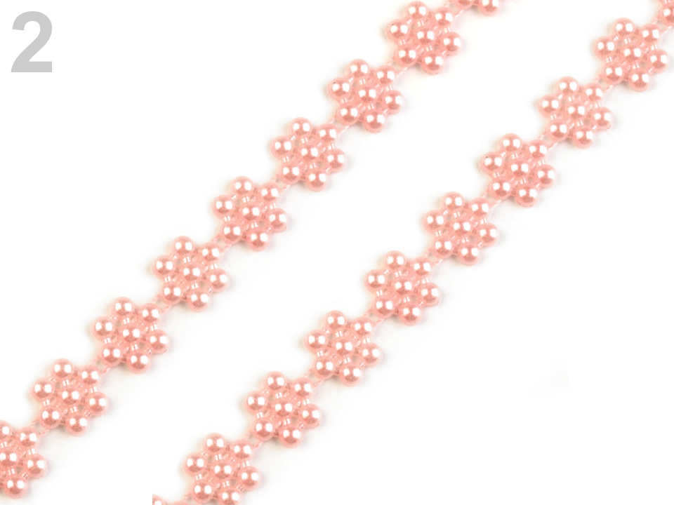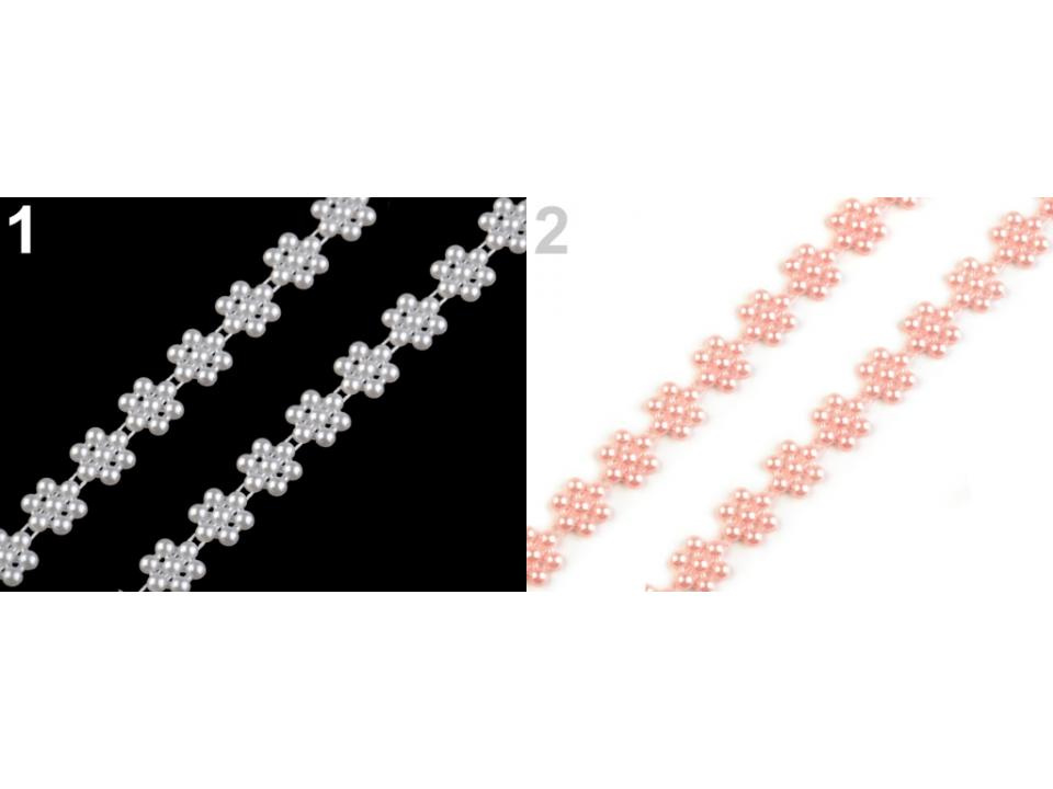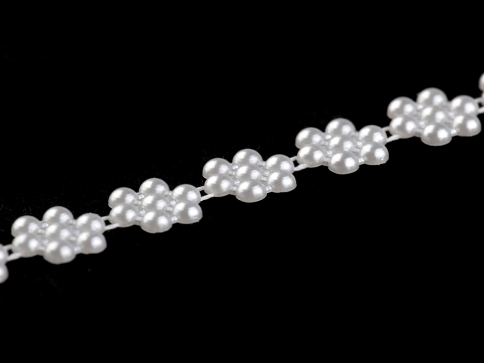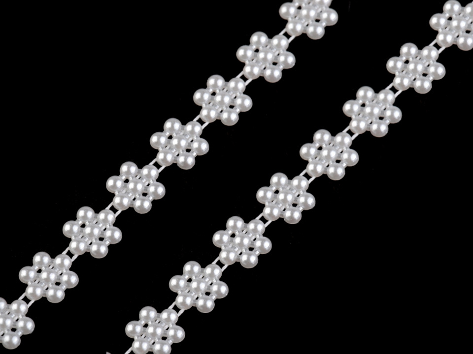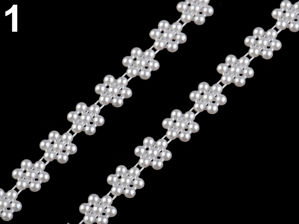 Efektní borta s perlami vykouzlí zajímavou atmosféru na každé události, ať už se jedná o plesy, svatby či oslavy. Svým tvarem připomíná květ. Můžete ji stříhat na libovolnou délku a lepit.