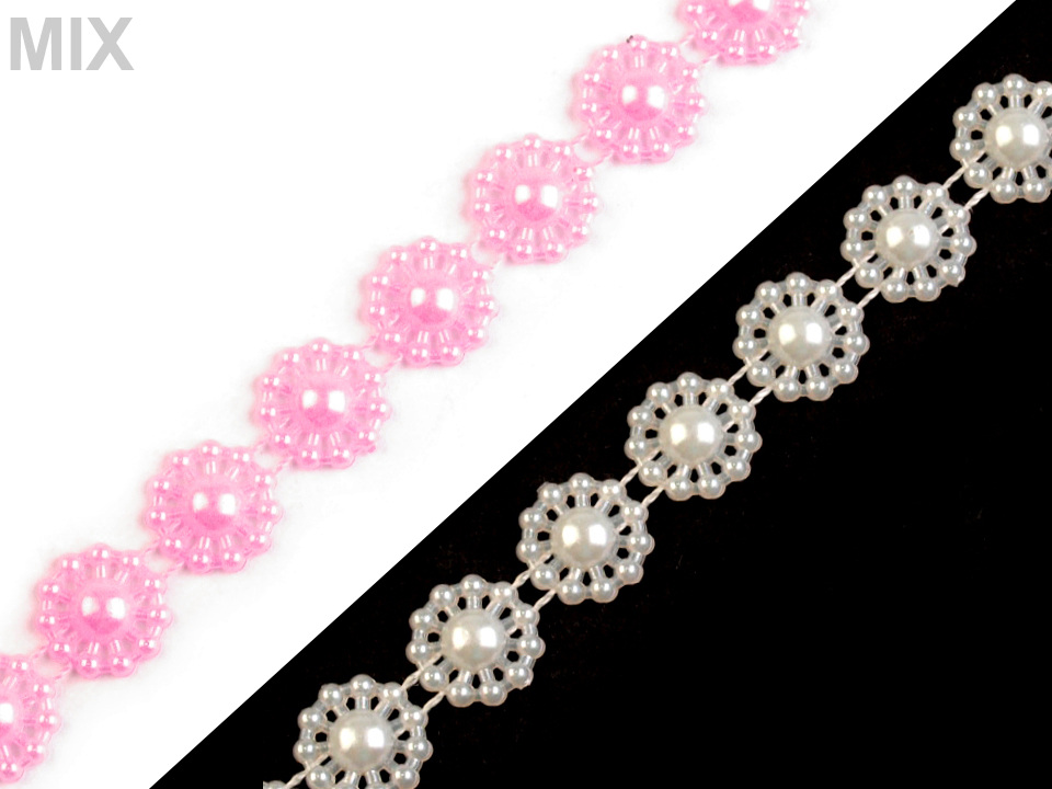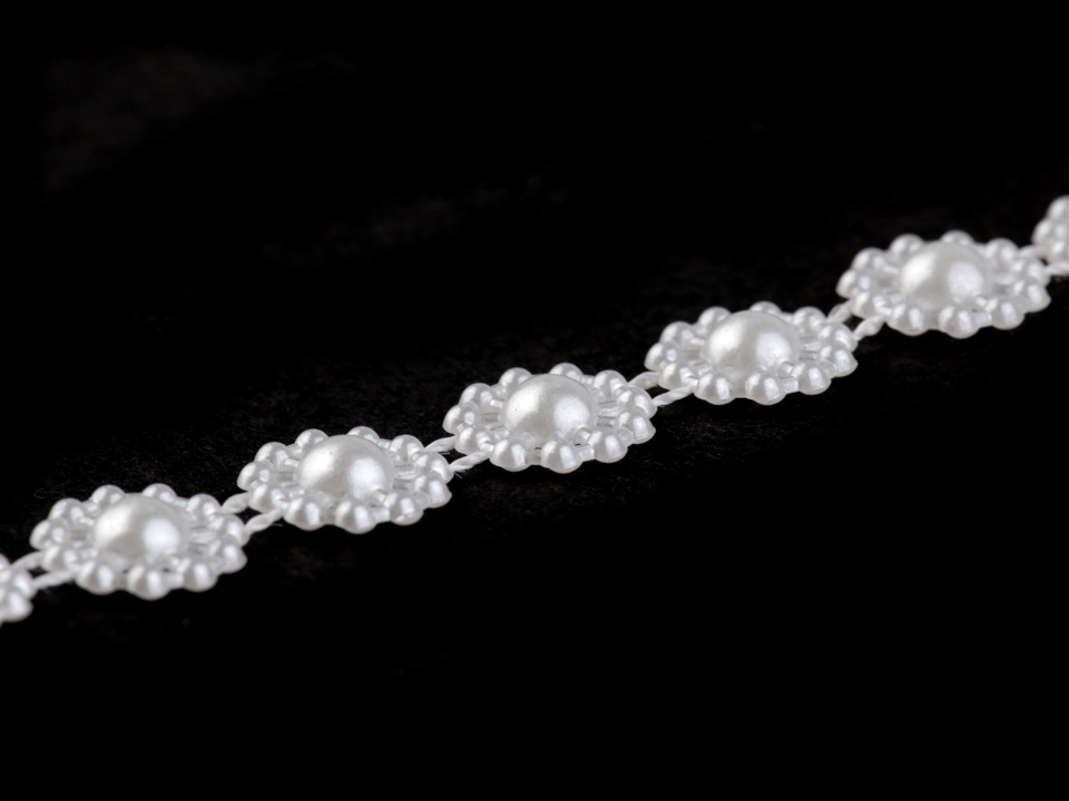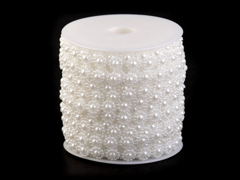 Perlová borta připomíná něžné květy. Vykouzlí zajímavou atmosféru na každé události, ať už se jedná o plesy, svatby či oslavy. Můžete ji stříhat na libovolnou délku a lepit.