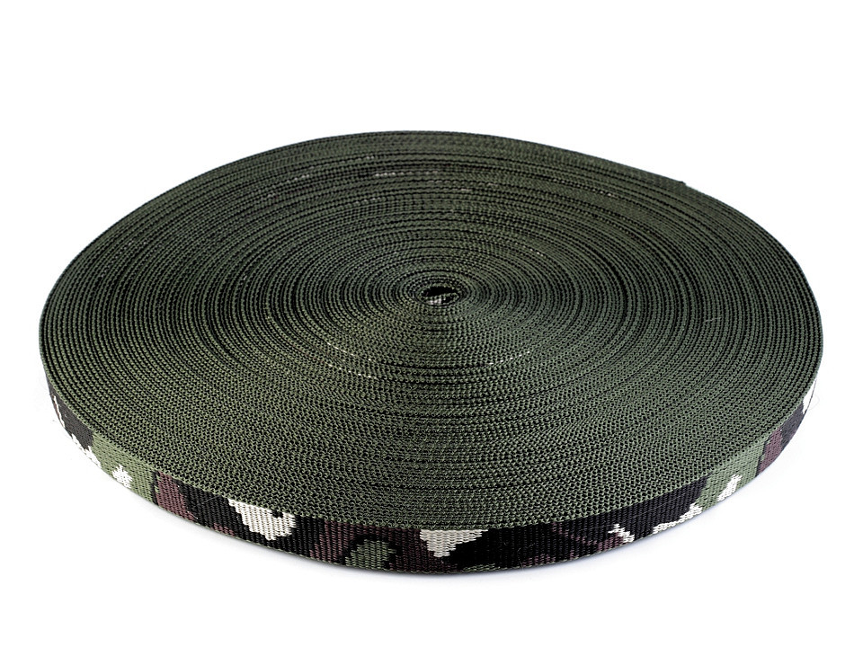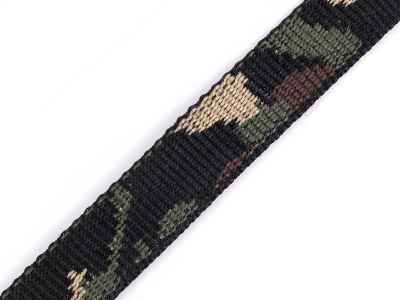 Polypropylénový popruh budou preferovat milovníci army stylu. Zdobí ho maskáčový vzor.