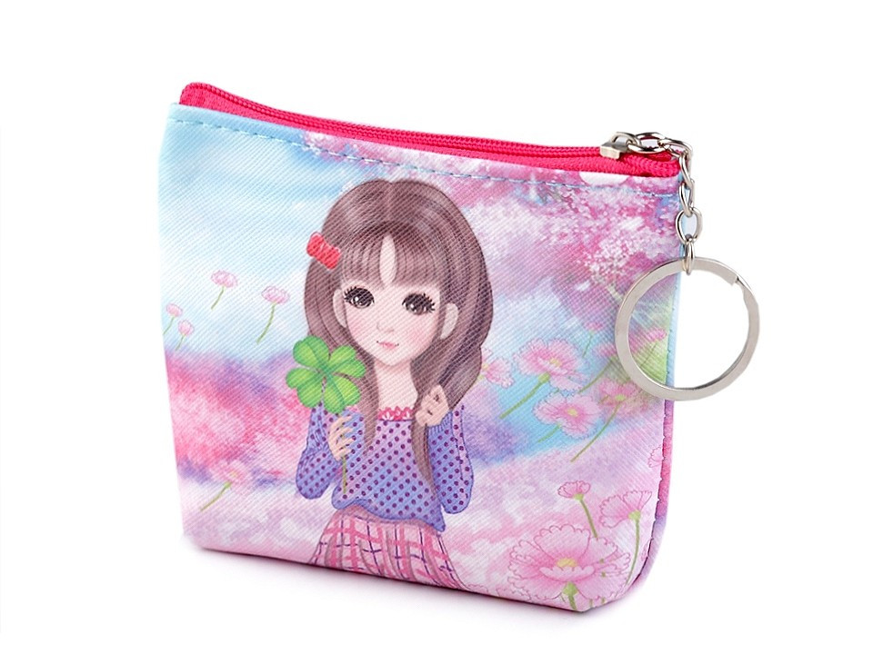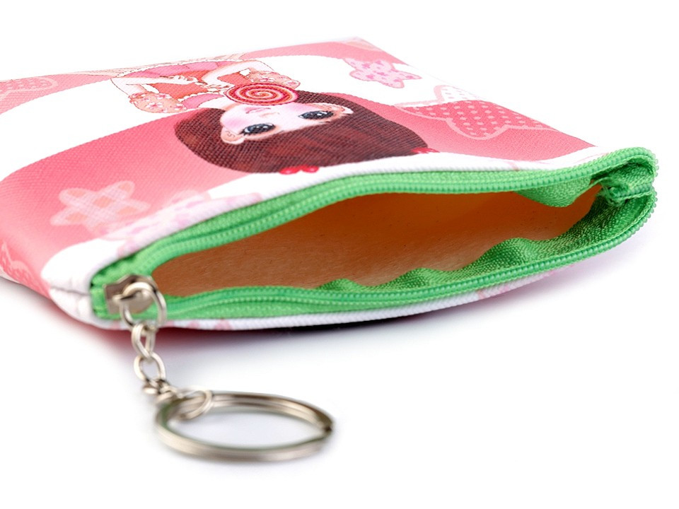 Peněženku s roztomilým potiskem si oblíbí především malé slečny. Hodí se do školy i na školní výlety, protože má praktický kroužek na klíče nebo přívěsek. Větší slečny ji rády používají na drobnou kosmetiku do kabelky. Zapíná se na zip, je bez vnitřní kapsičky. Díky kroužku ji můžete připevnit na tašku, kabelku, batoh, klíčenku apod.