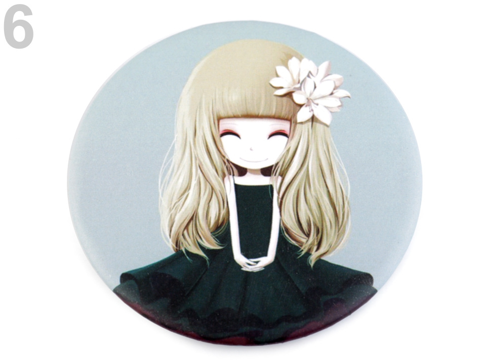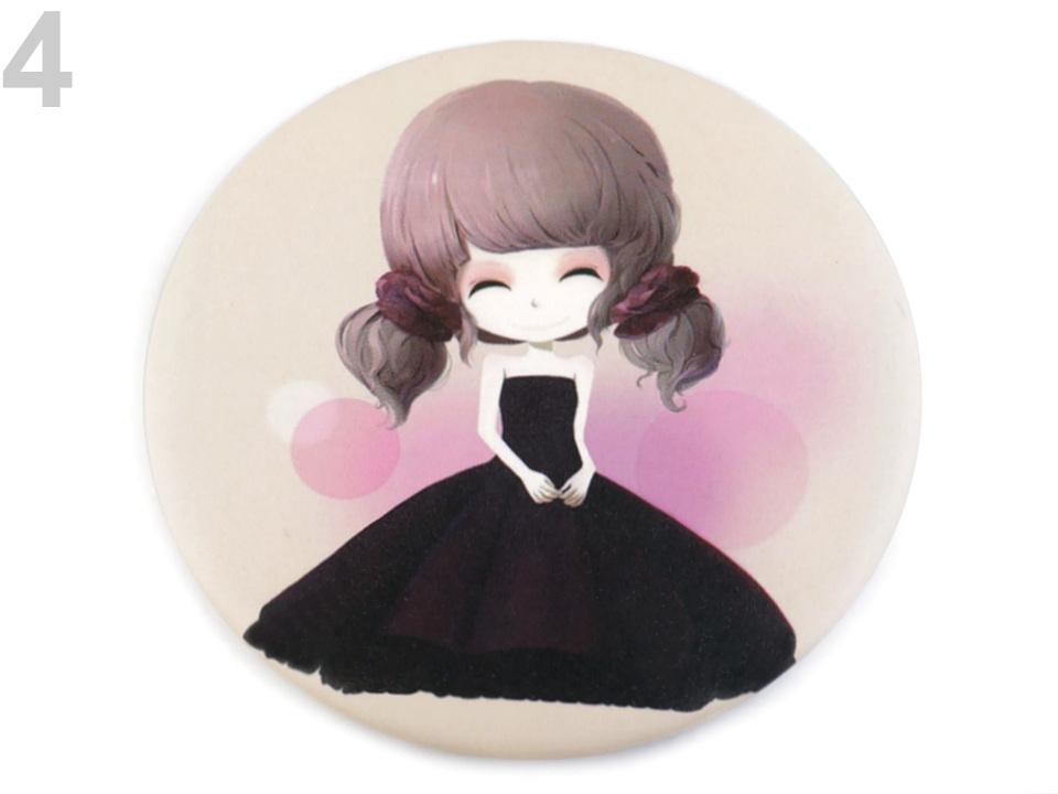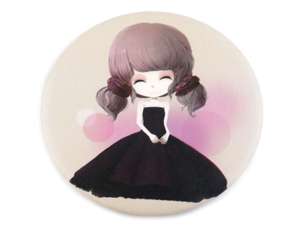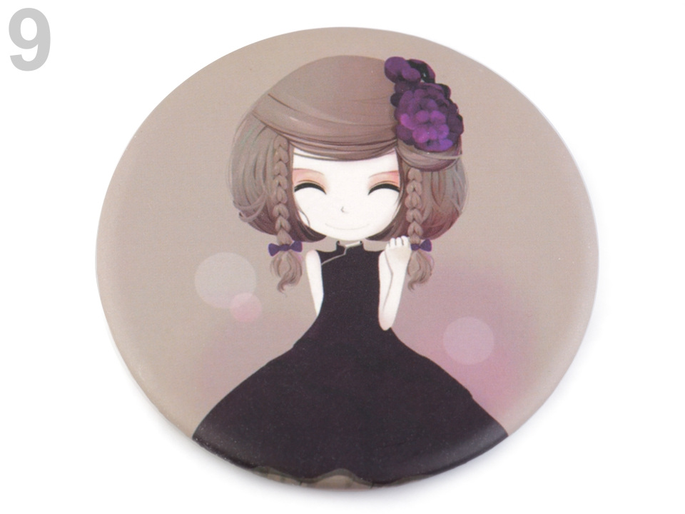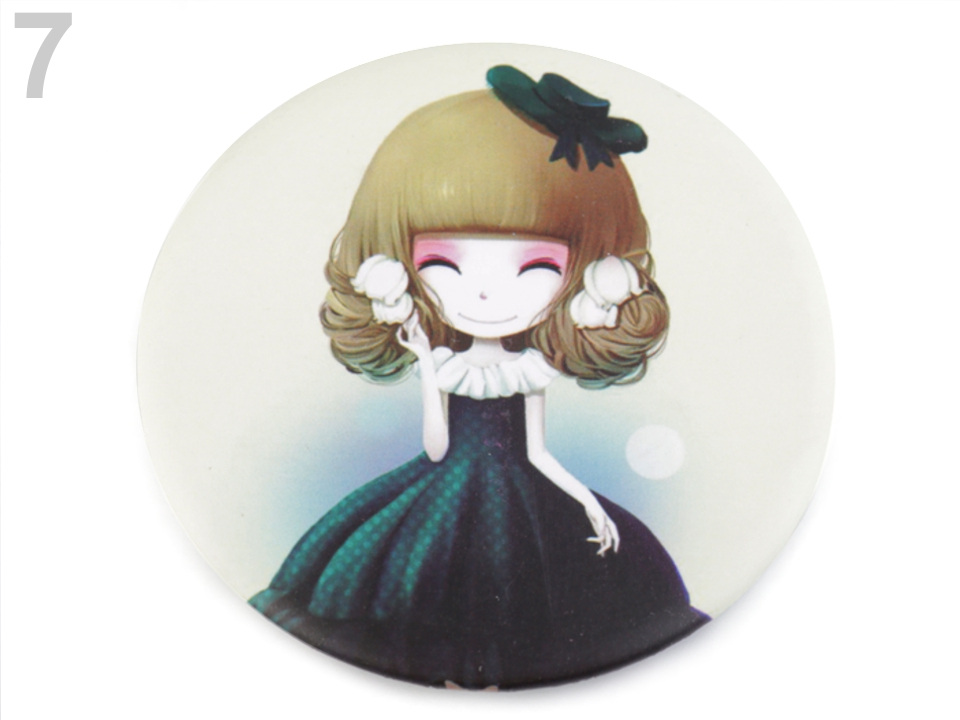 Jednoduché kapesní zrcátko, které se vejde i do té nejmenší dámské taštičky. Je to výborný pomocník pro opravu make-upu kdykoliv během dne. Zadní strana je ozdobená potiskem s motivem roztomilých dívek.
